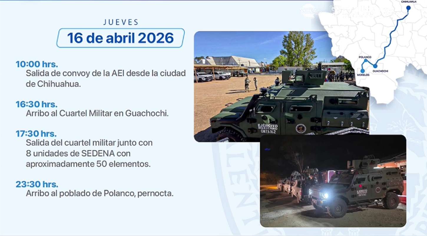 La reconstrucción de los hechos establece que el convoy, integrado por 40 elementos de la AEI, partió de la ciudad de Chihuahua el jueves 16 de abril. Tras una reunión con mandos militares en Guachochi —en la que no participaron los civiles extranjeros—, las fuerzas estatales y federales arribaron a la localidad de "El Pinal" el viernes 17 de abril.