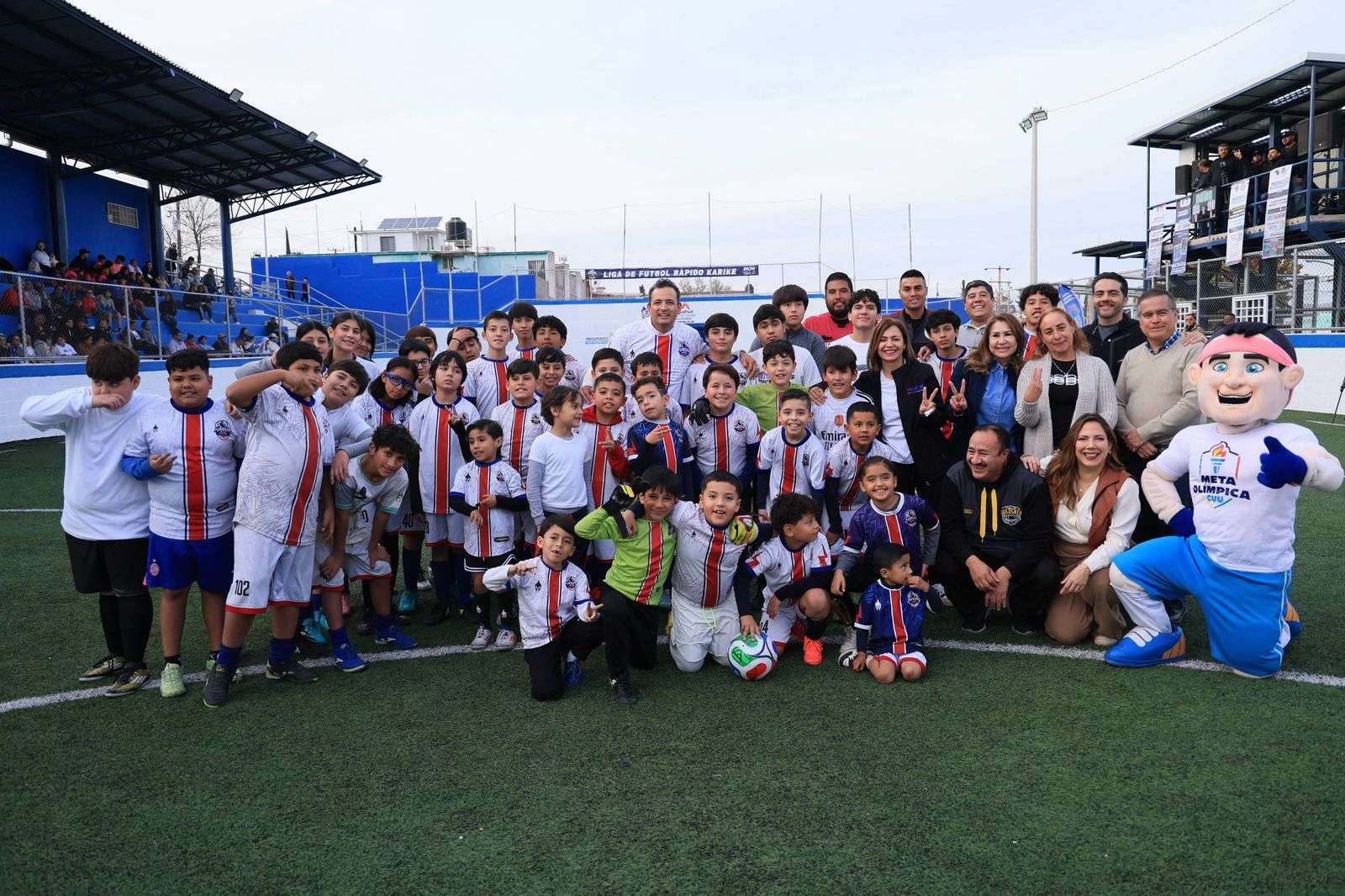 Chihuahua, Chih.- El alcalde Marco Bonilla inauguró la rehabilitación del parque Lomas Karike, donde convivió con vecinas y vecinos y jugó un partido de futbol con niñas y niños del sector, como parte de la entrega de este espacio público renovado gracias al Presupuesto Participativo.