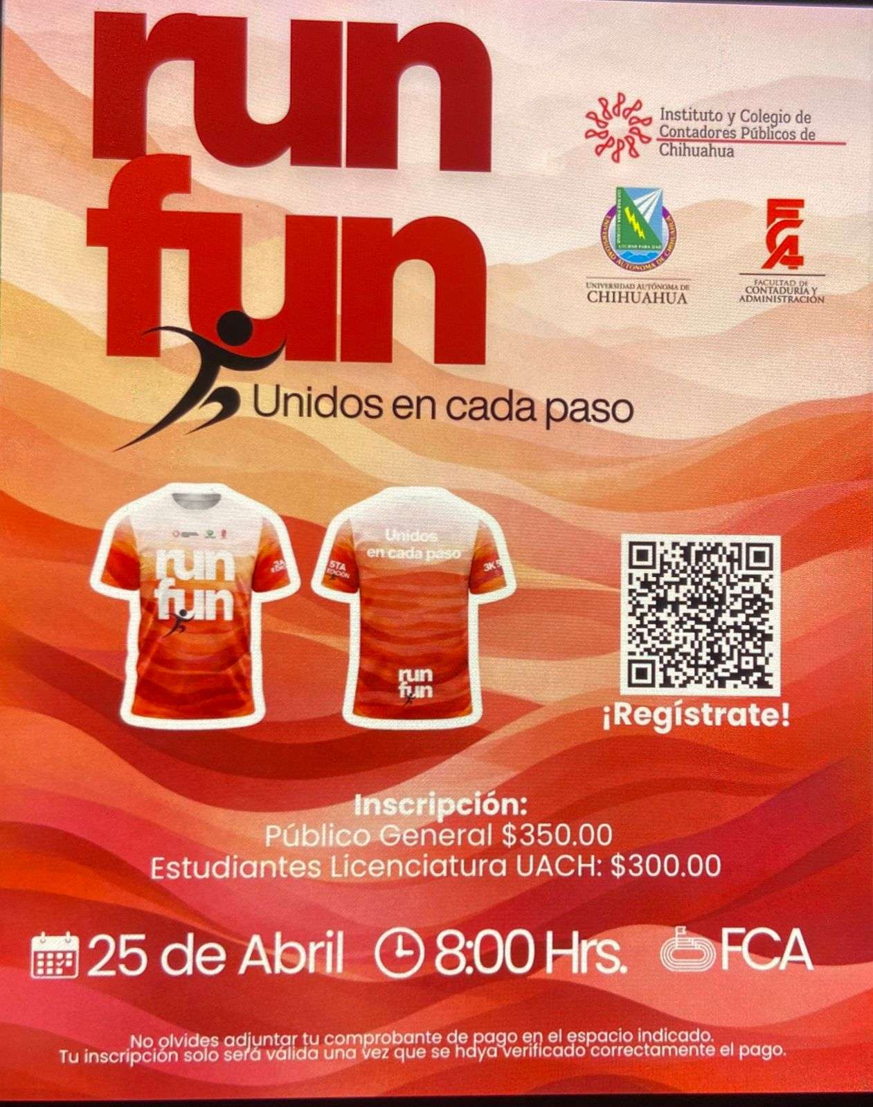 Chihuahua.- Se realizó la presentación de la quinta edición de la Carrera Run Fun 2026, que se estara el próximo 25 de abril a las 8:00 de la mañana la cuál se llevará a cabo en el campus ll de la Uach.