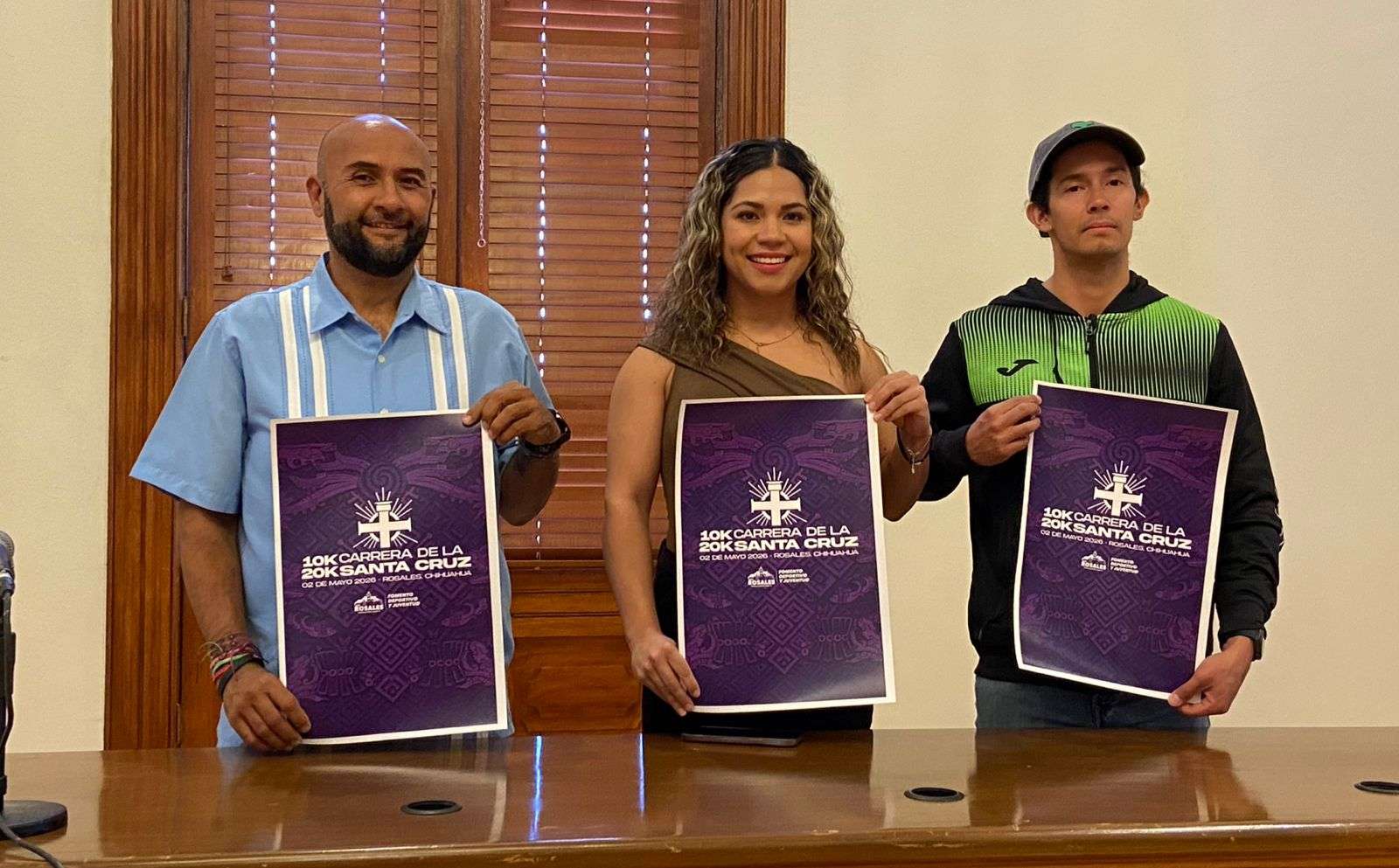 Chihuahua.- Se llevó a cabo la presentacion de la primera edición de la carrera de la Santa Cruz que se realizará en el municipio de Rosales el próximo 2 de mayo en la presa Francisco I. Madero a partir de las 8:00 de la mañana.