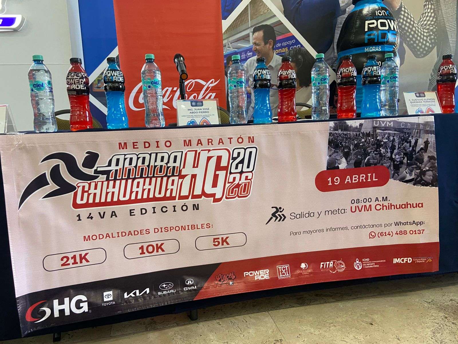 Chihuahua.- Se llevó a cabo la invitación para participar en el medio maratón Arriba Chihuahua HG 2026 en su décimo cuarta edición en sus tres modalidades 21k, 10k y 5k.