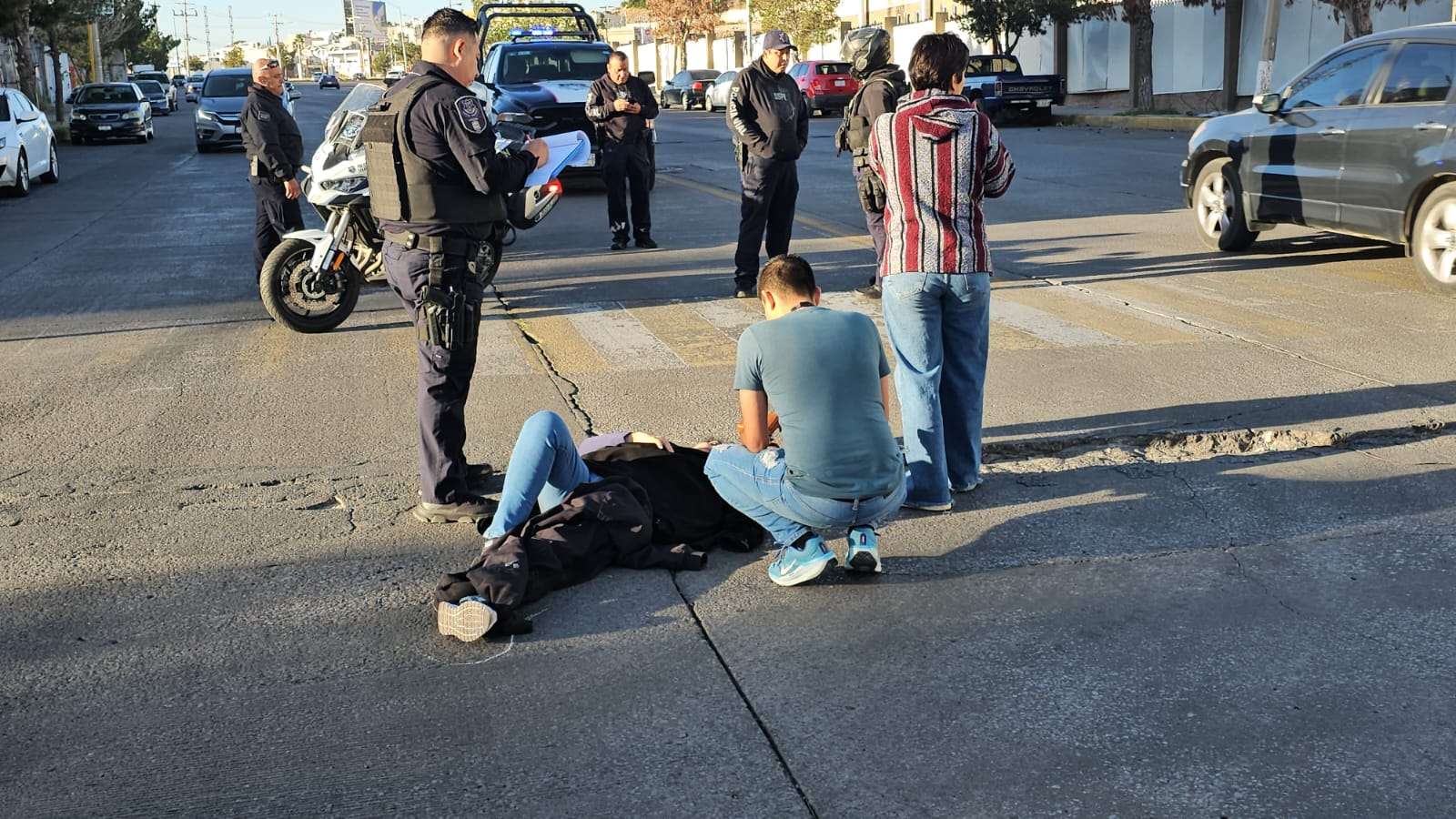 Chihuahua.– En el cruce del bulevar El Saucito y la Avenida Juan Escutia, una mujer fue atropellada por un vehículo Chevrolet Aveo mientras intentaba cruzar la calle a pie.