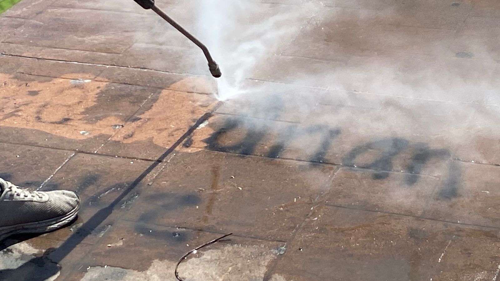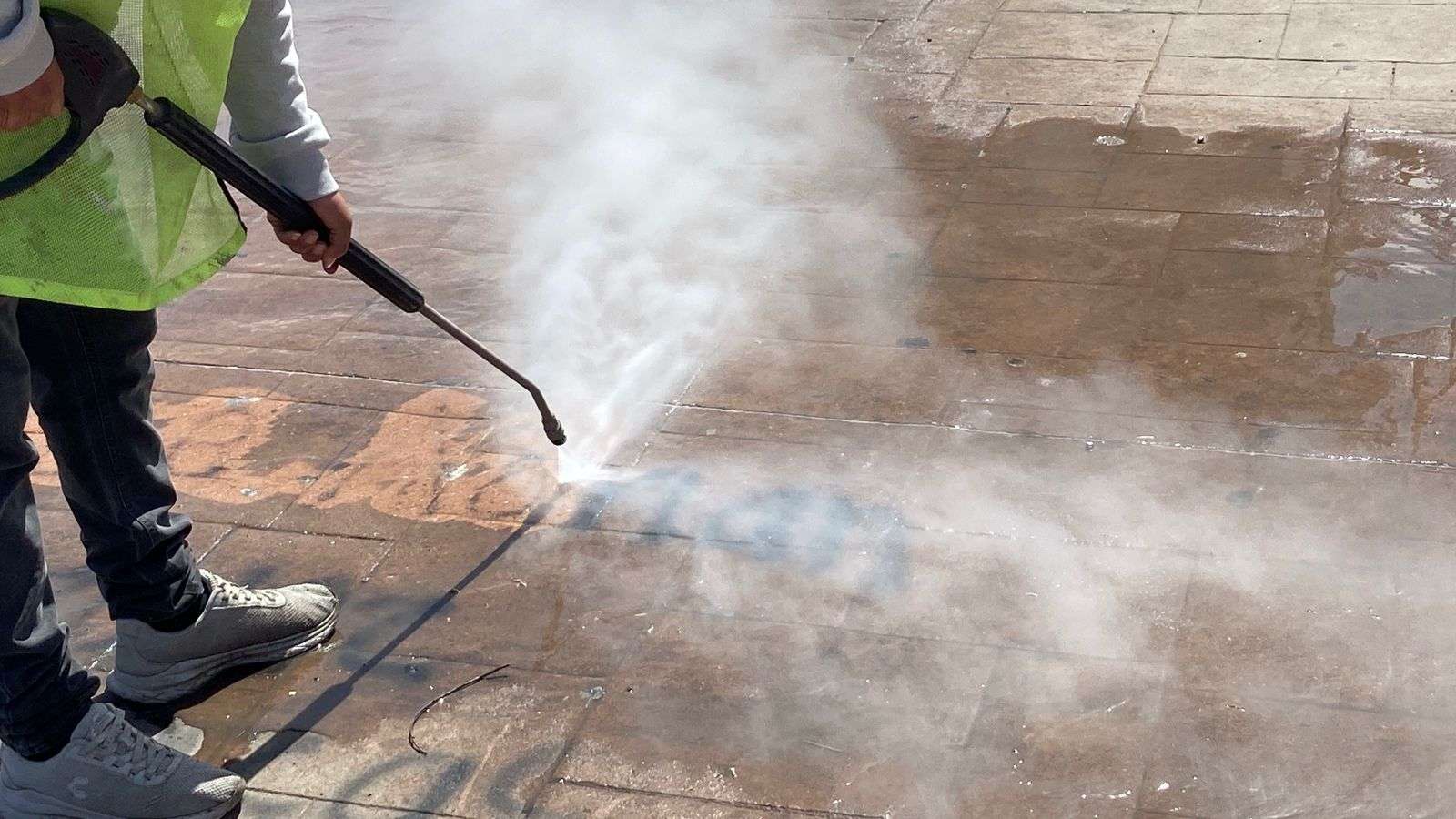 Señalaron, que un día antes impregnan de un químico los grafittis que trabajarán al otro día, para poder con una hidrolavadora quitarlos a presión.