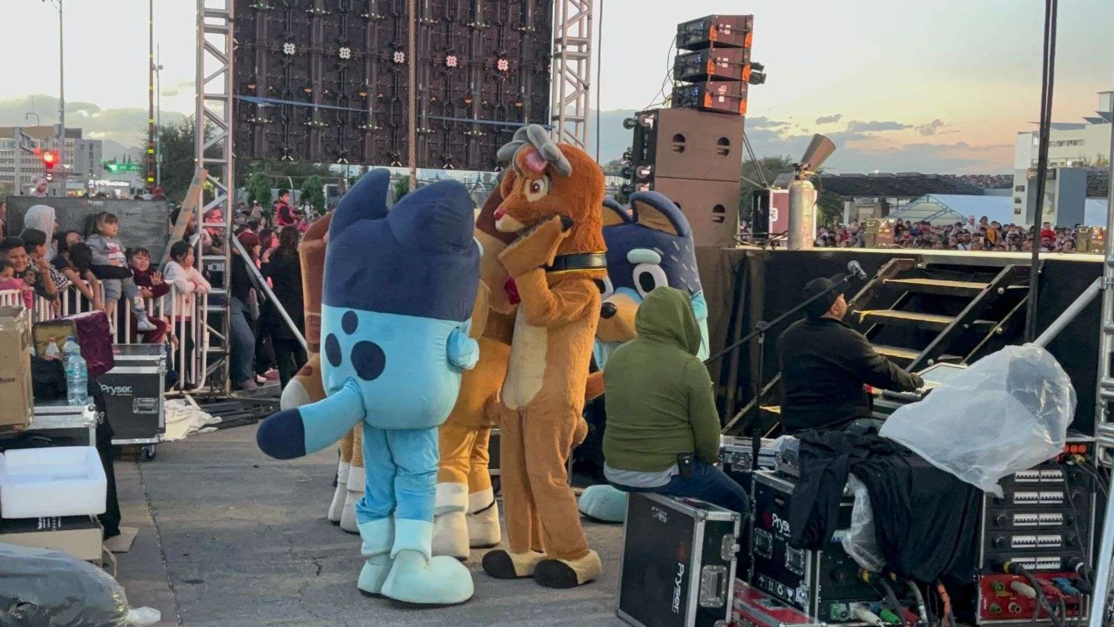 Chihuahua.- Un estimado de más de 4 mil personas arribaron al evento Navidad en Familia, en donde se presentó el show de Blue y Bingo en Busca de la Navidad, previo al encendido del Árbol Navideño, en la plaza Mayor.