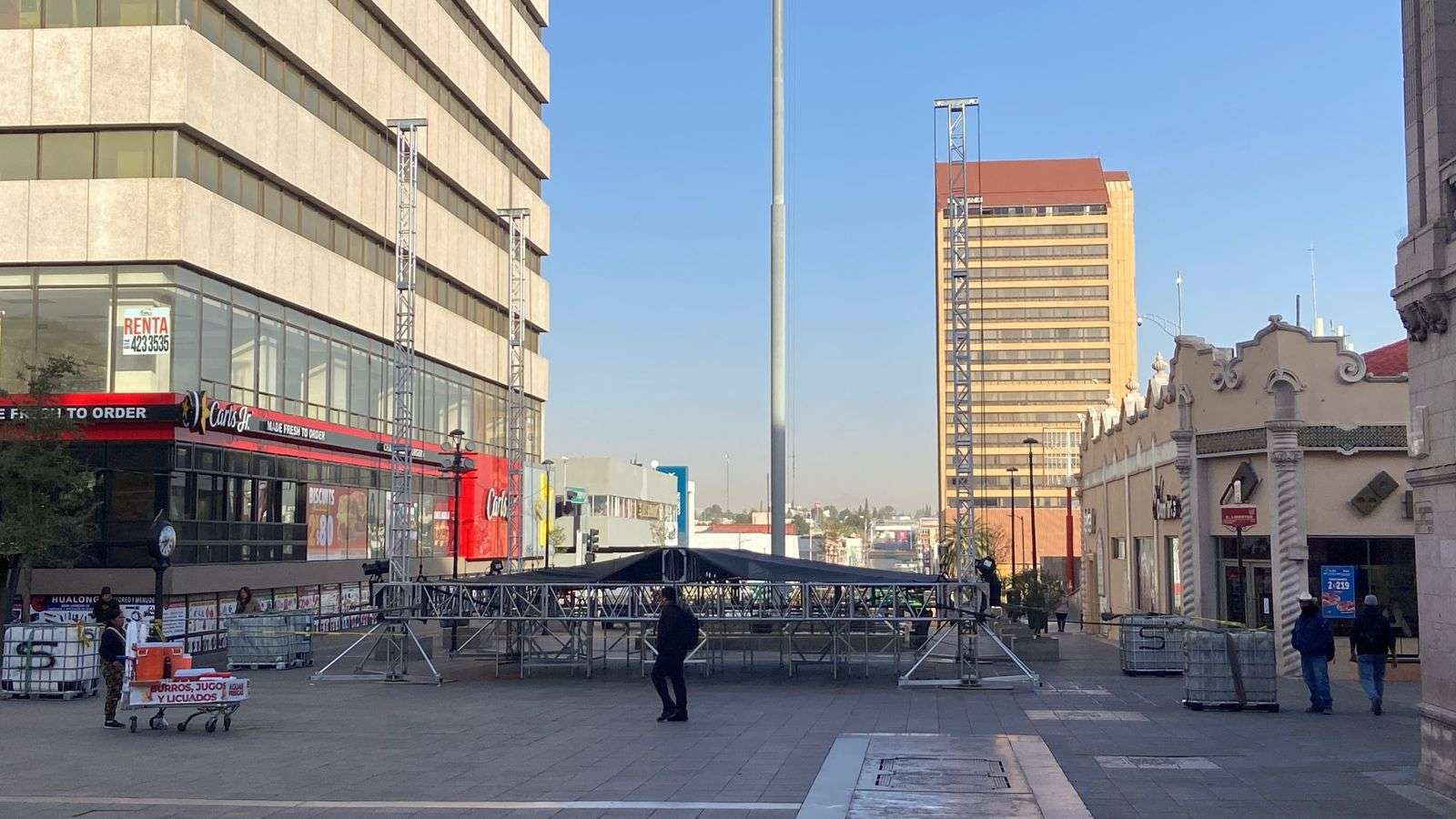 Chihuahua.- En la Plaza de Armas se montó un escenario donde se estará llevando a cabo el Festival Folclórico del 13 al 15 de marzo dónde estarán participando más de 3 mil 500 bailarines.