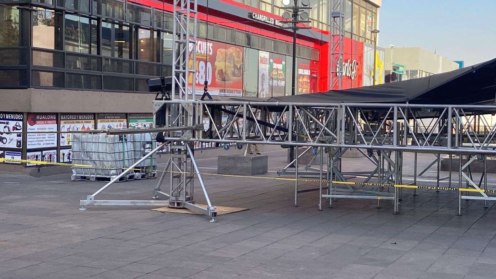Se trata de un pequeño escenario, con un templete y una carpa que estará albergando a los grupos de danza que estarán participando en este evento.