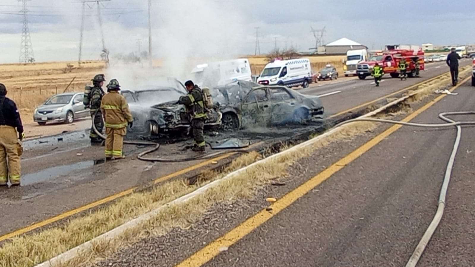 Chihuahua, Chih.– Un trágico y aparatoso accidente vial se registró la tarde de este domingo sobre la carretera que conecta a ciudad Cuauhtémoc con Chihuahua, a la altura del kilómetro 29, dejando como saldo tres personas sin vida, además de una intensa movilización de cuerpos de emergencia.