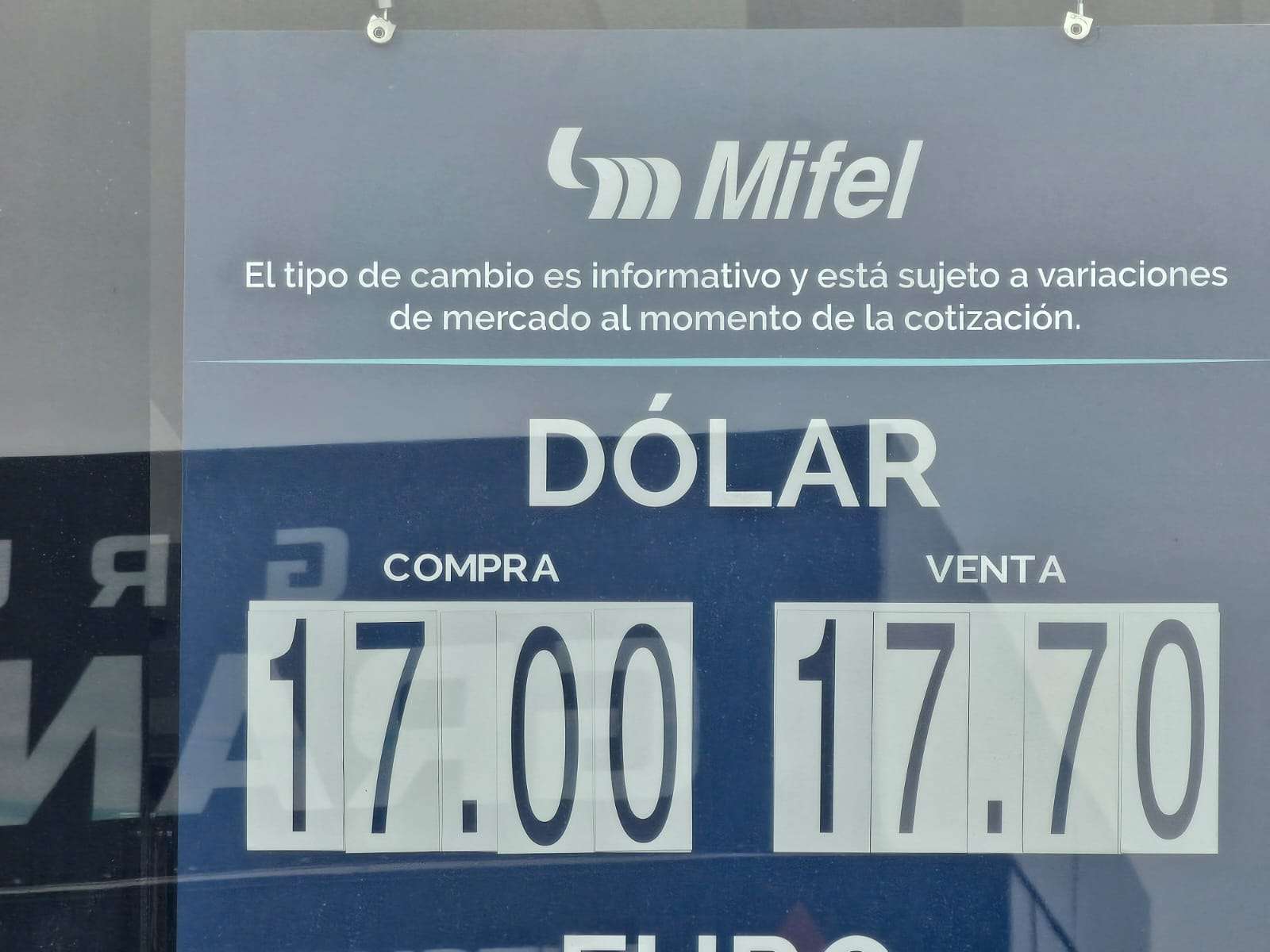 Chihuahua. - La mañana de este domingo 8 de febrero, la financiera Mifel ofertó el dólar en 17.00 pesos a la compra y 17.70 pesos a la venta, de acuerdo con los precios exhibidos en ventanilla.