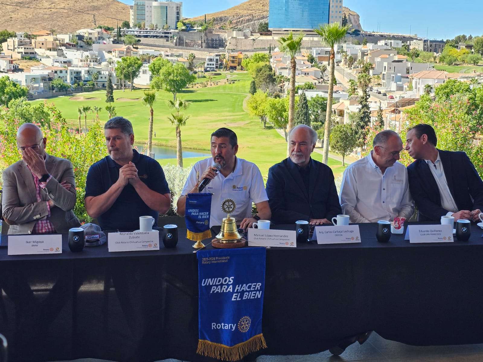 Chihuahua.- En el marco del 40 aniversario del Club Rotario Chihuahua Campestre, el presidente del organismo, Manuel Francisco López Hernández, presentó el Torneo de Golf con Causa, el cual tendrá como objetivo apoyar el programa “Ceguera Evitable” y la construcción de una clínica especializada.
