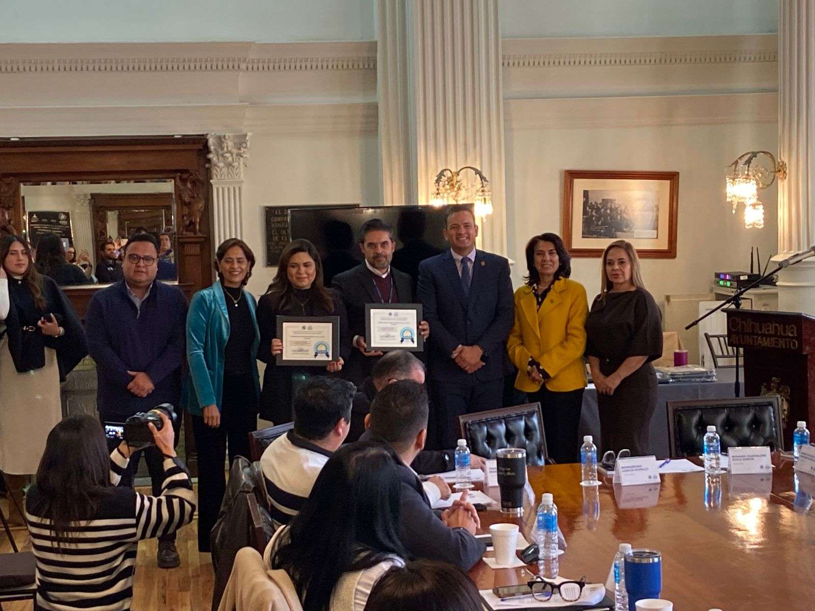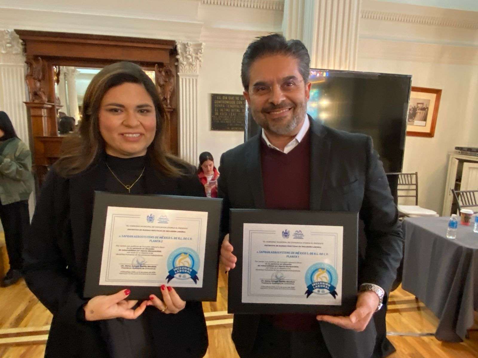 Chihuahua.– En sesión de Cabildo se llevó a cabo la entrega del distintivo de Buenas Prácticas de Inclusión Laboral a las seis plantas de la empresa Safran Aerosystems de México, por su compromiso con la promoción de una cultura de respeto, equidad y dignidad para las personas con discapacidad.