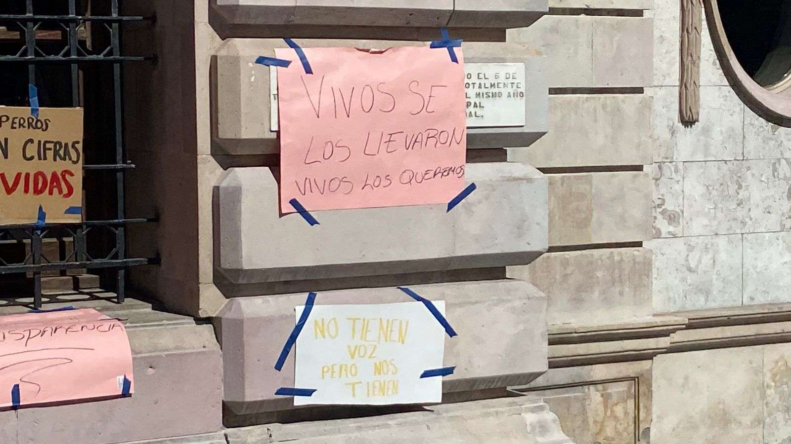 Las pancartas fueron colocadas en la pared del lado derecho del acceso principal al Ayuntamiento, lo que ha llamado la atención de las personas que transitan por la Plaza de Armas, quienes se detienen a leer su contenido.