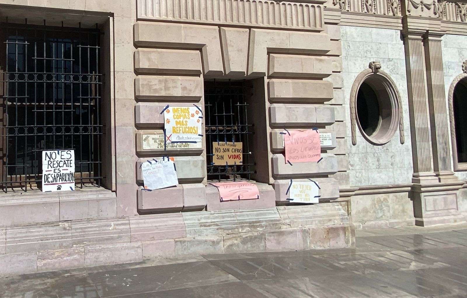 Entre los mensajes plasmados en las cartulinas destacan: “Los perros no son cifras, son vidas”, “No es golpe político, es golpe de realidad” y “No es rescate, es desaparición”.
