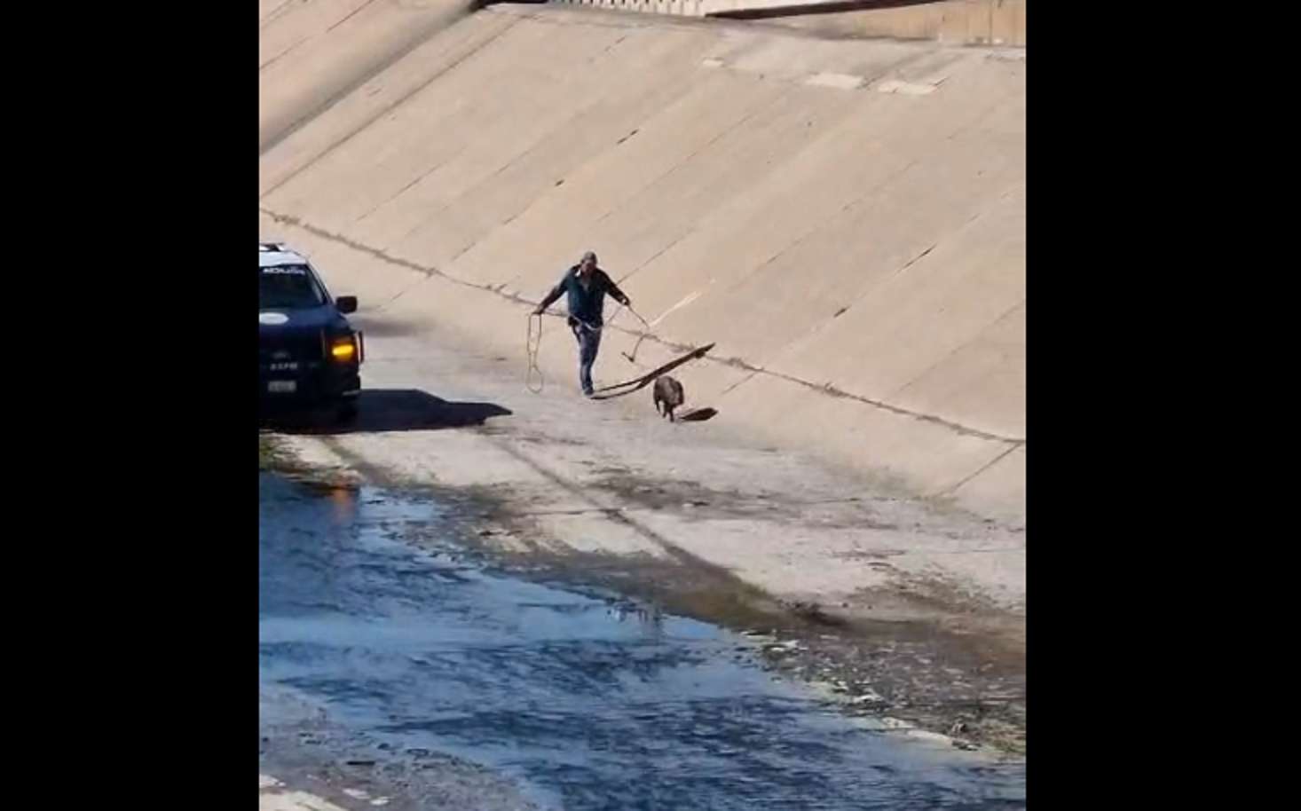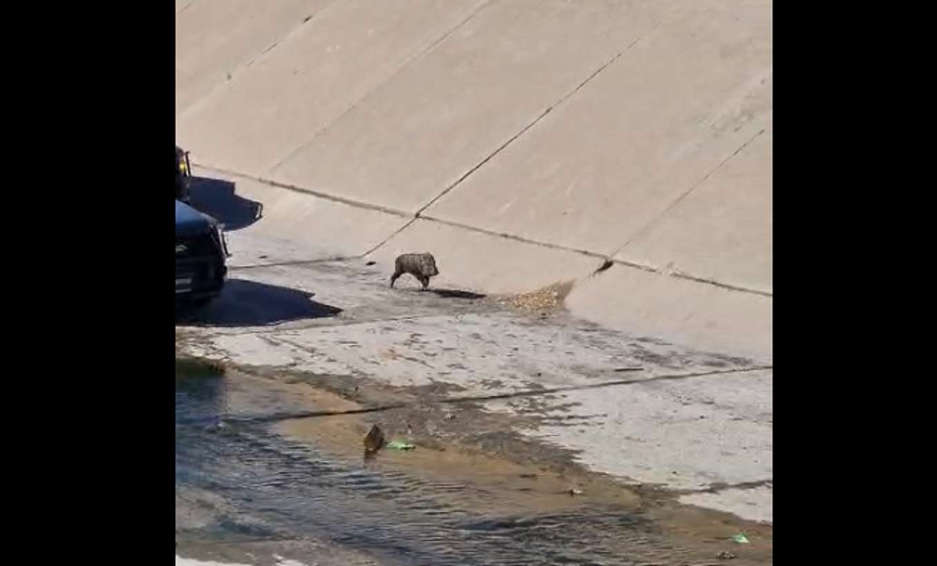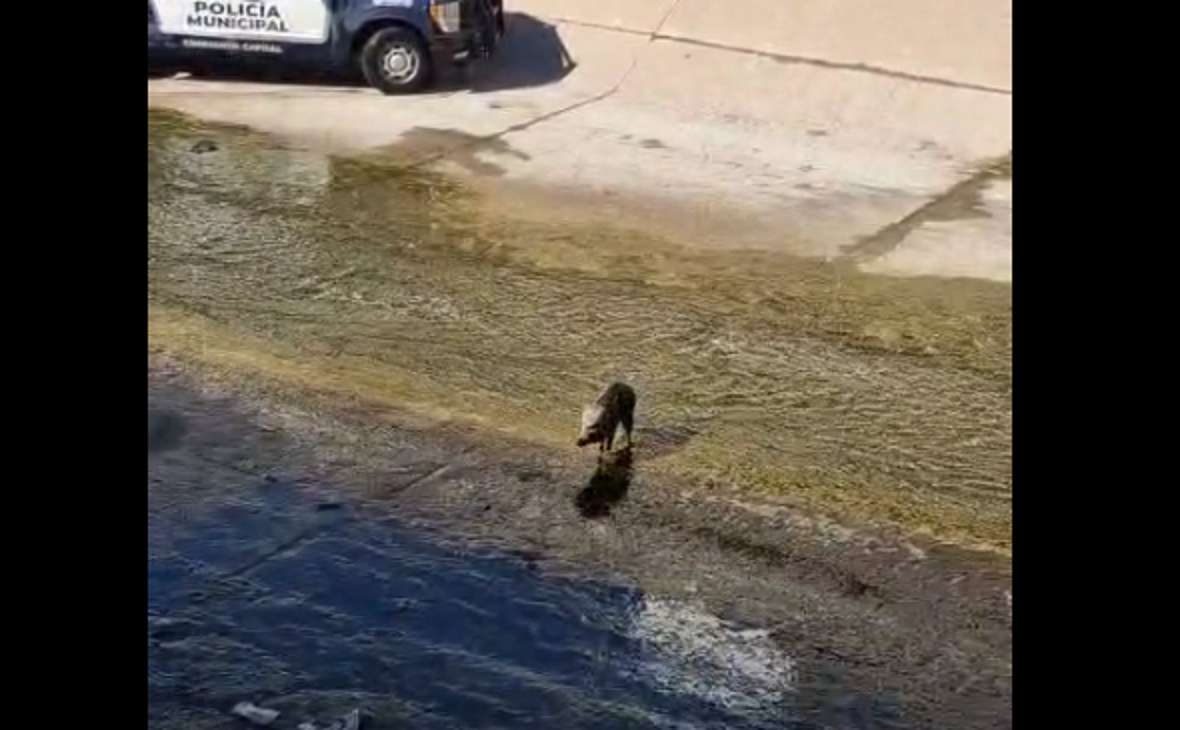 Chihuahua, Chih.- La mañana de este viernes fue captada en video una persecución protagonizada por elementos de la Policía Municipal tras detectar a un jabalí macho que ingresó al cauce del canal Chuvíscar, volviéndose rapidamente viral en redes sociales, gracias a que el usuario de nombre "Mario Valdez" lo compartió en Facebook.