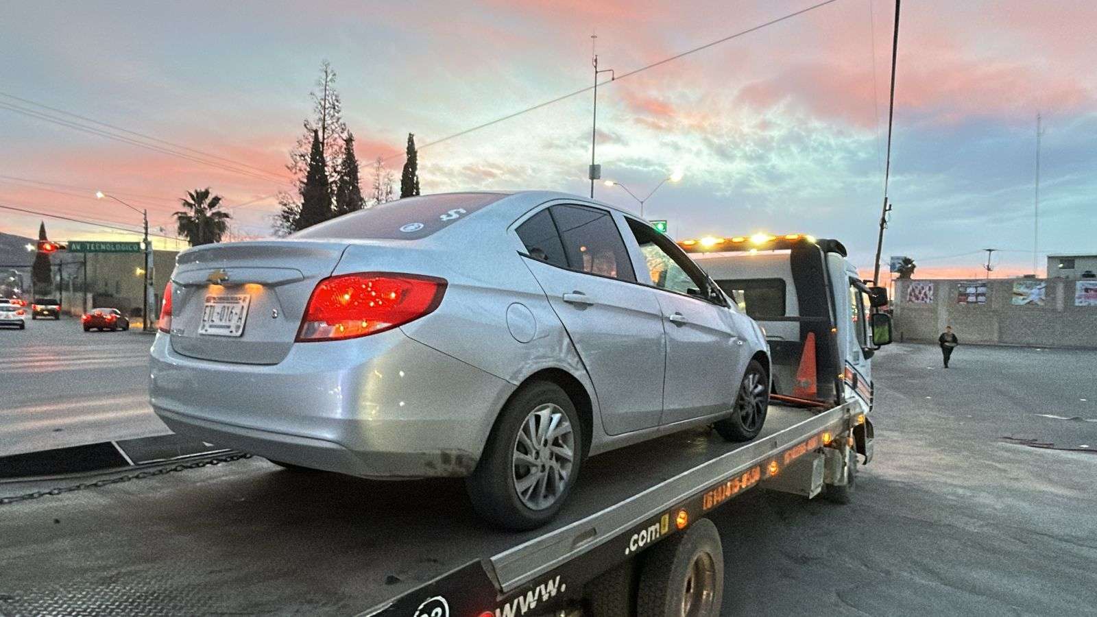 Chihuahua.- Un accidente vial registrado en el cruce de la avenida Tecnológico y Pino dejó como saldo únicamente daños materiales, luego de que un vehículo Chevrolet Aveo volcara a causa del exceso de velocidad.
