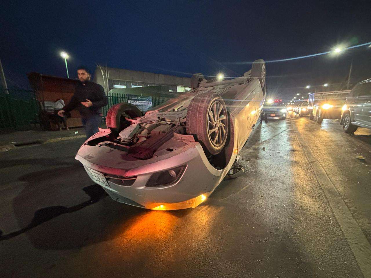 El percance ocurrió cuando el conductor perdió el control de la unidad, impactándose contra el camellón central y proyectándose hacia el carril de extrema derecha, donde finalmente el vehículo terminó volcado.