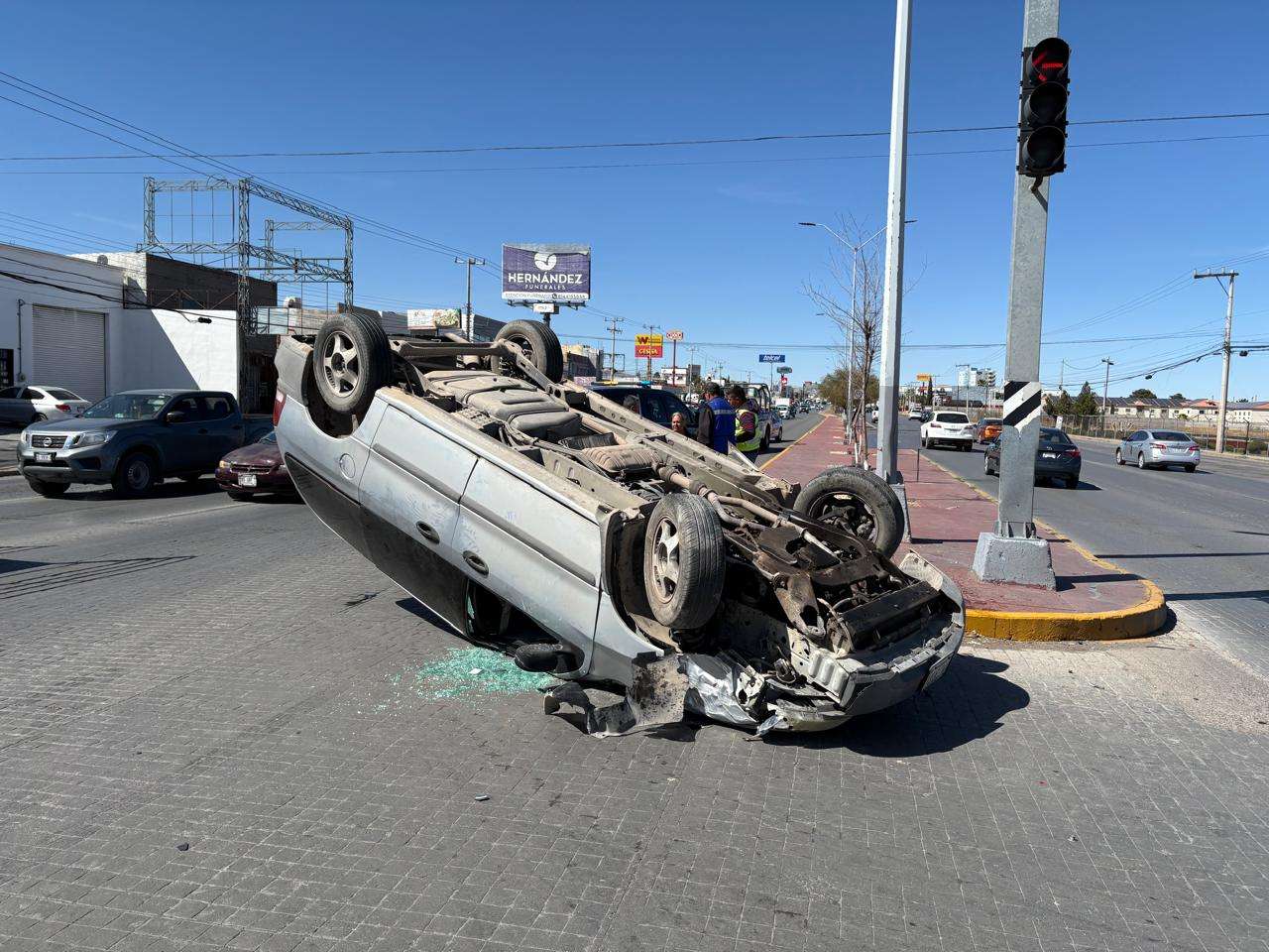 Chihuahua.- Una mujer y un menor de edad resultaron lesionados tras protagonizar un aparatoso choque con volcadura en el cruce de la avenida Tecnológico y Paseos de Bachíniva, en la colonia Paseos de Chihuahua.
