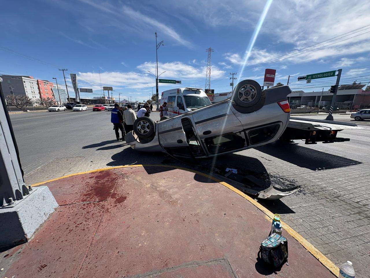 El accidente ocurrió cuando la conductora de una camioneta Ford Windstar circulaba por la avenida Tecnológico en sentido de norte a sur. De acuerdo con los primeros reportes, la mujer perdió el control del volante y se impactó contra el camellón central, lo que provocó que uno de los neumáticos reventara y que el vehículo terminara volcado sobre el toldo.