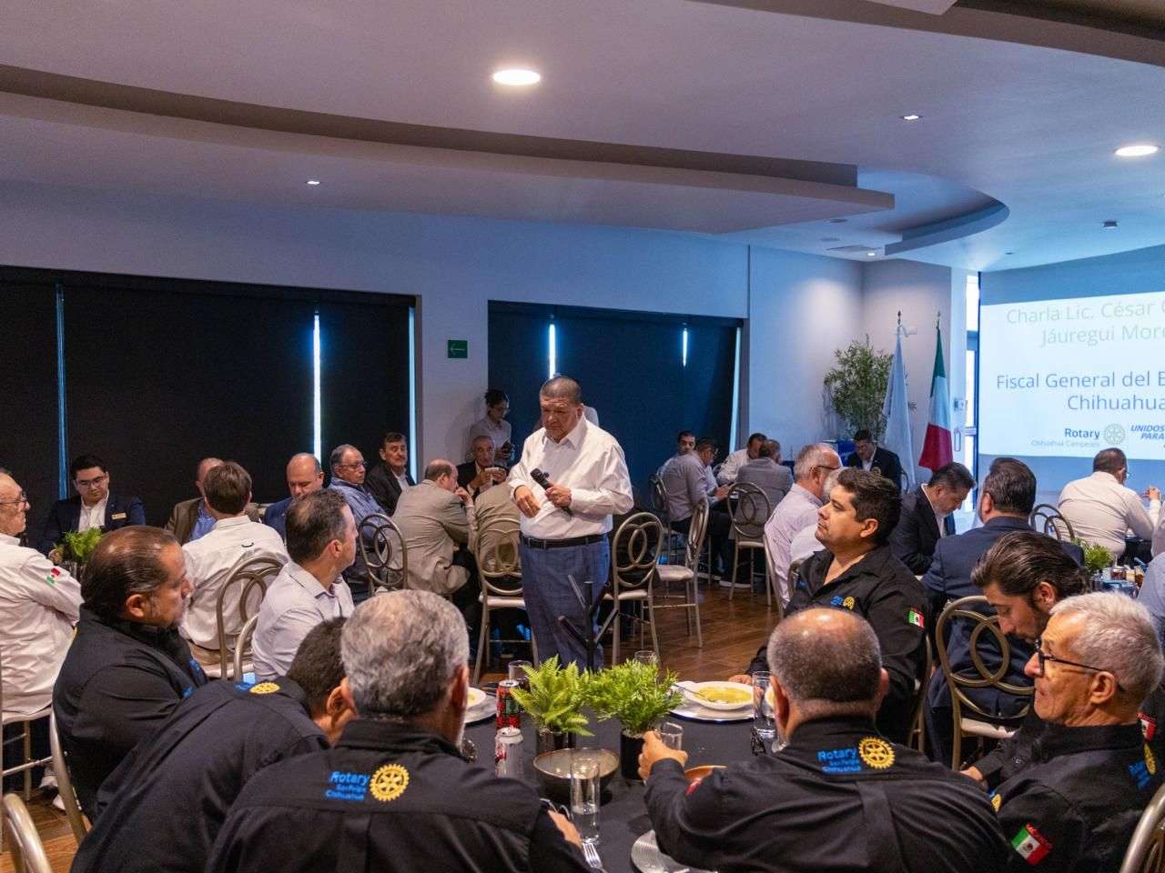 Chihuahua, Chih. — El Fiscal General del Estado, César Jáuregui Moreno, sostuvo este miércoles un encuentro con integrantes del Club Rotario Chihuahua, como parte de su estrategia de acercamiento con los distintos grupos organizados de la sociedad civil, a quienes presentó un panorama sobre la procuración de justicia en la entidad, así como los avances y logros alcanzados por la institución.