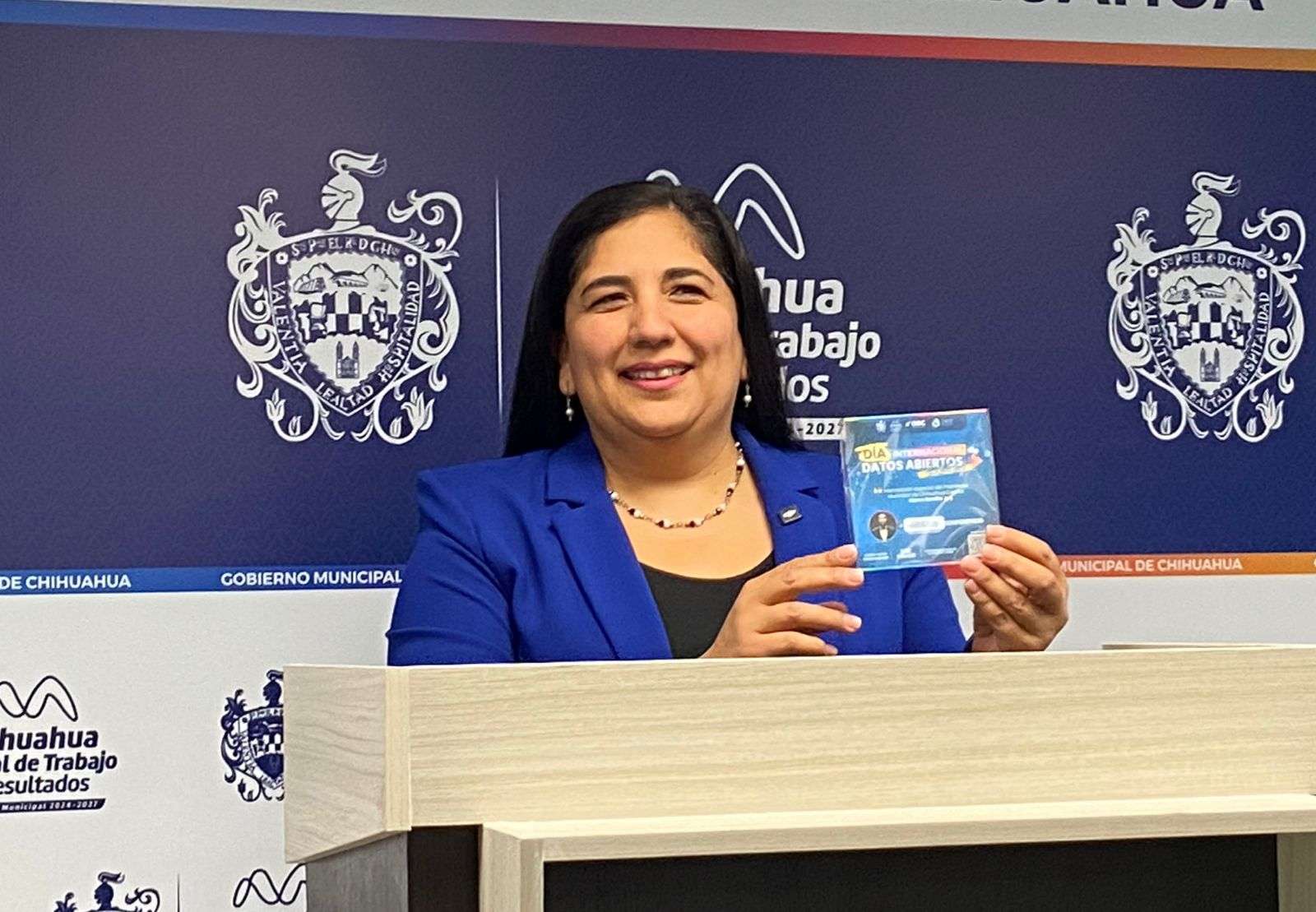 Chihuahua.- Amelia Martinez coordinadora de transparencia y gobierno abierto, realizó la invitación al Open Data Day, en el marco del Día Internacional de Datos Abiertos que se realizará en el Poliforum de la Facultad de Filosofía y Letras de la Uach.