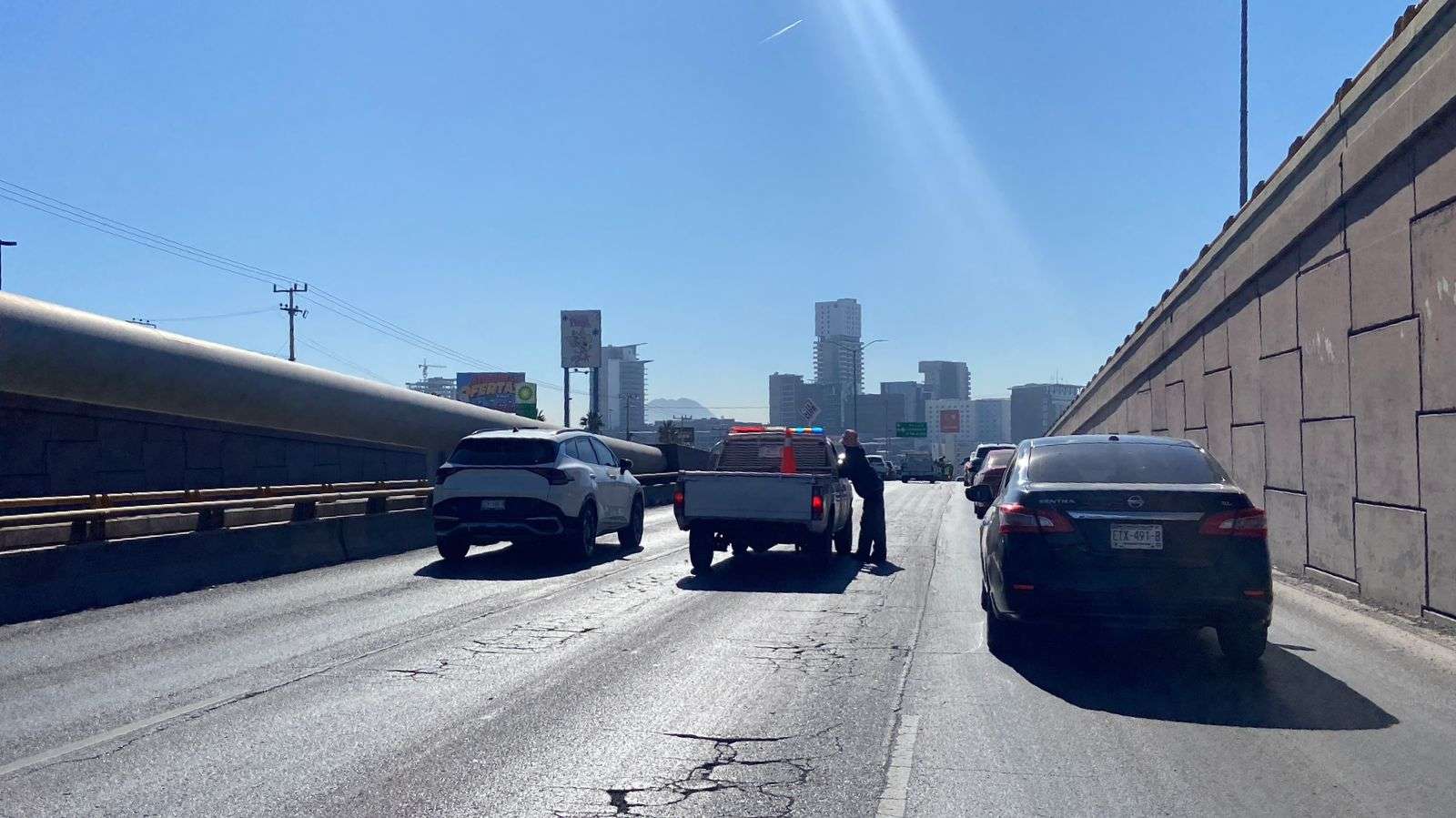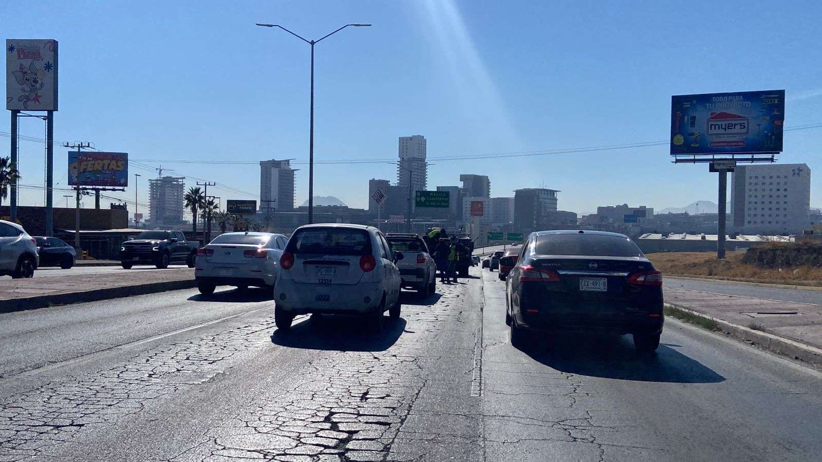 Chihuahua.- Esta tarde se registró un congestionamiento vial en el Periférico de la Juventud en el sentido de norte a sur, debido a los trabajos de bacheo que realiza la Dirección de Obras Públicas en los carriles centrales, a la altura del puente de la Juan Escutia.