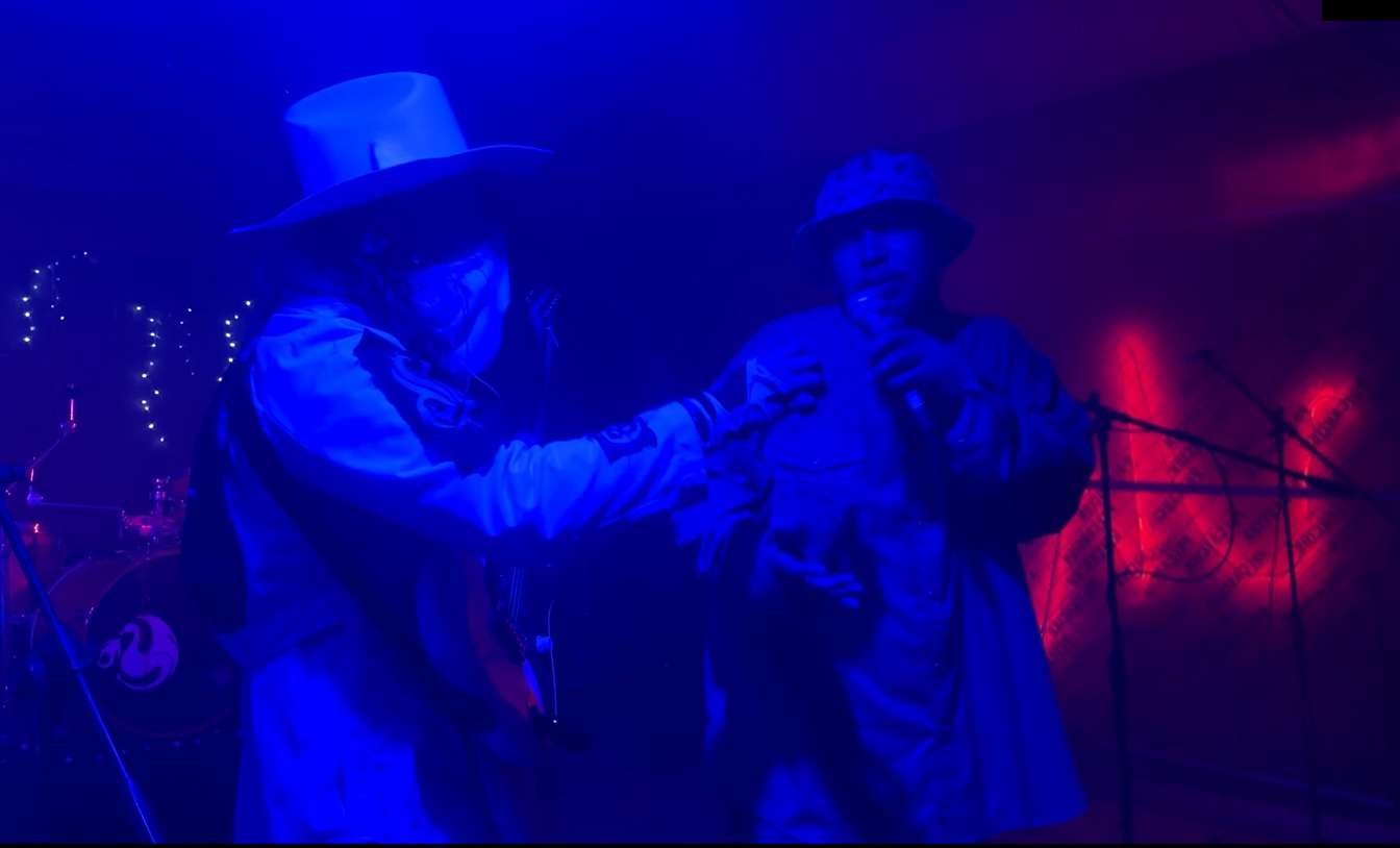 Ataviados en estrambóticas túnicas aderezadas por miles de puntos y máscaras de papel maché, este grupo –en pleno desarrollo- pareciera estar destinado a lograr un espacio en el firmamento de la música no-comercial. Notoriamente influenciados por los Lizzard Wizzard , algo de The Residents y en cierta medida por una etapa en particular de un gigante llamado Frank Zappa, esta banda –innovadora, rara, hermosa- merece la oportunidad de escucharla con audífonos y sin tener a la mano ese aparato tan nocivo e idiotizante llamado teléfono móvil. Al inició señalé el uso de bajo y guitarra micro tonales. Y eso que es? Se come, se bebe o se fuma? – preguntó Frijol-.