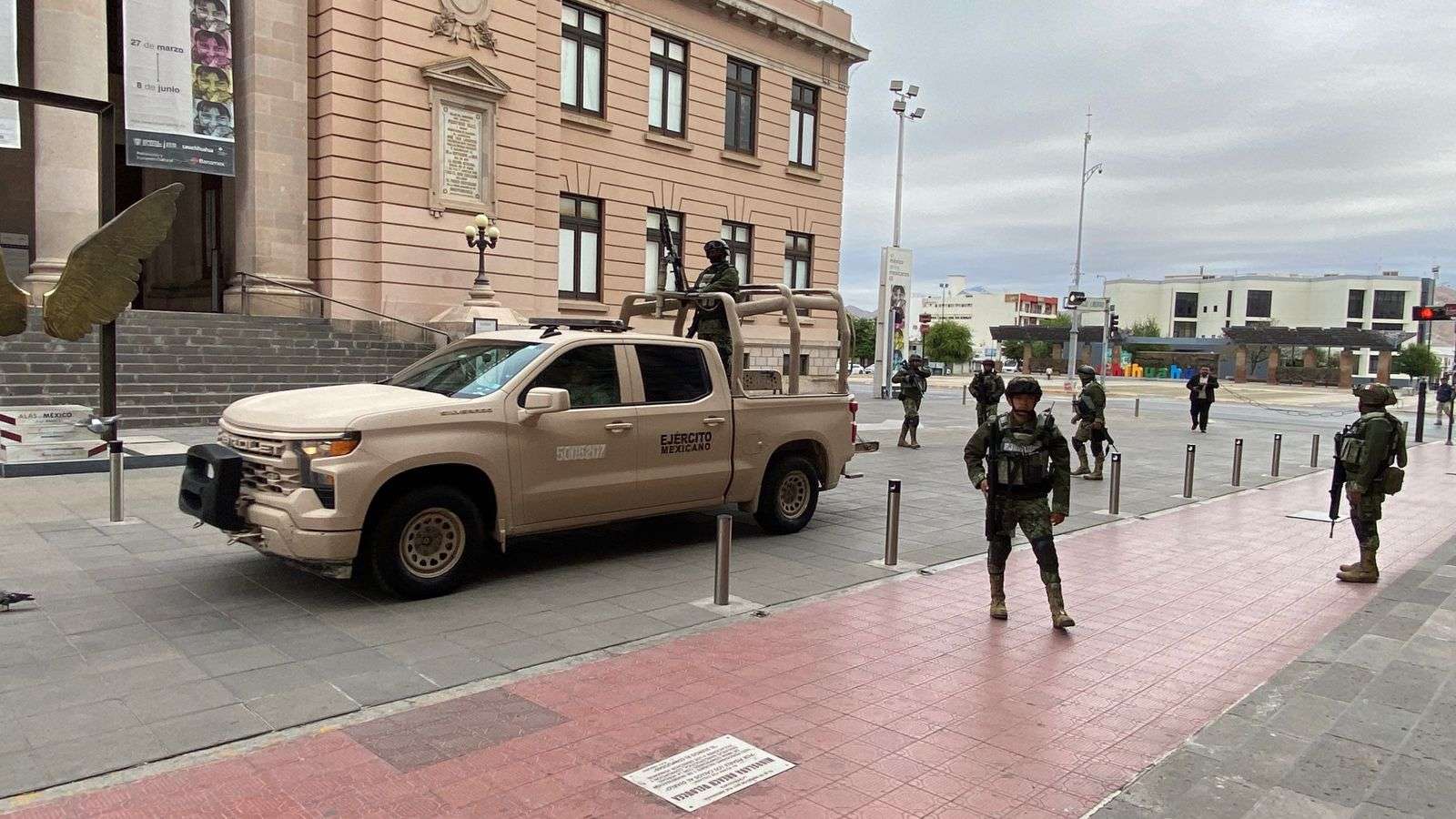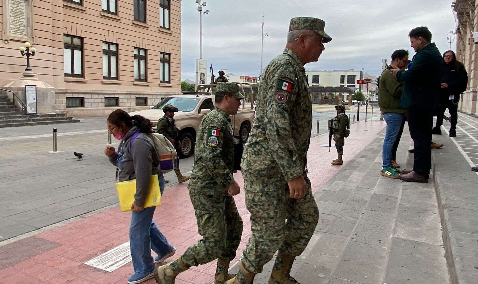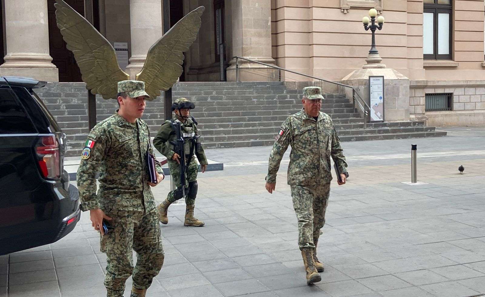 Al palacio de gobierno arribaron elementos de la Secretaria de la Defensa Nacional, de la Guardia Nacional, de la Secretaria de Seguridad Pública Estatal y de la Fiscalía General del Estado.