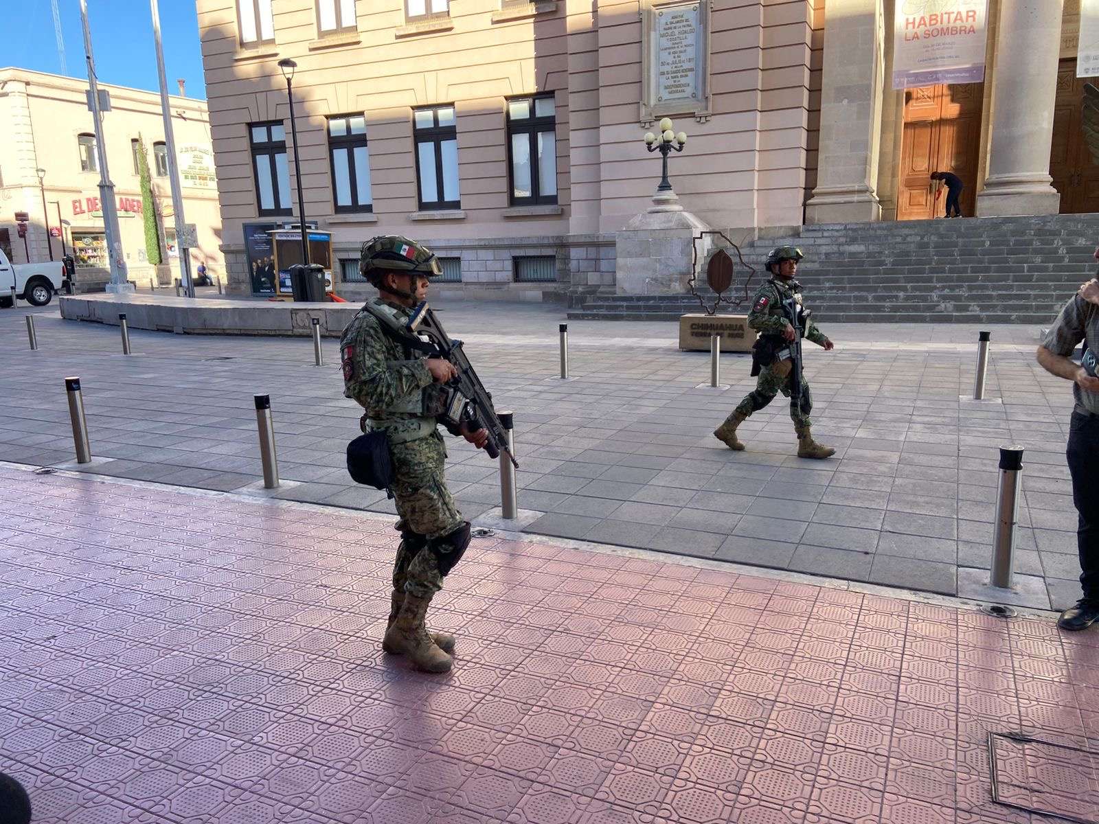 Al palacio de gobierno arribaron elementos de la Secretaria de la Defensa Nacional, de la Guardia Nacional, de la Secretaria de Seguridad Pública Estatal y de la Fiscalía General del Estado.