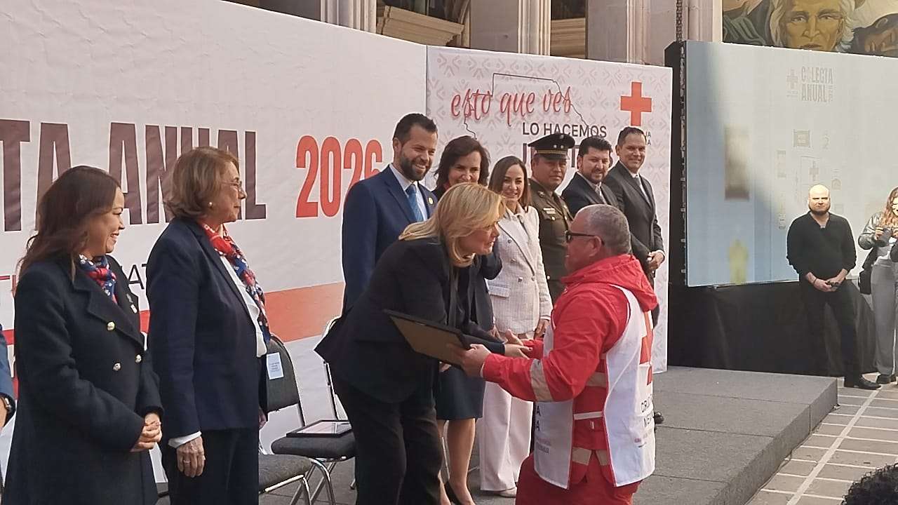 Chihuahua.- Durante la celebración de la Colecta Anual 2026 de la Cruz Roja Mexicana, la gobernadora Maru Campos Galván encabezó con discurso en honor a Lucía Frías (quien desempeñó el cargo de radiooperadora) y Simona Sigala (enfermera), quienes dedicaron su vida al cuidado de la salud a través de la Cruz Roja Mexicana.