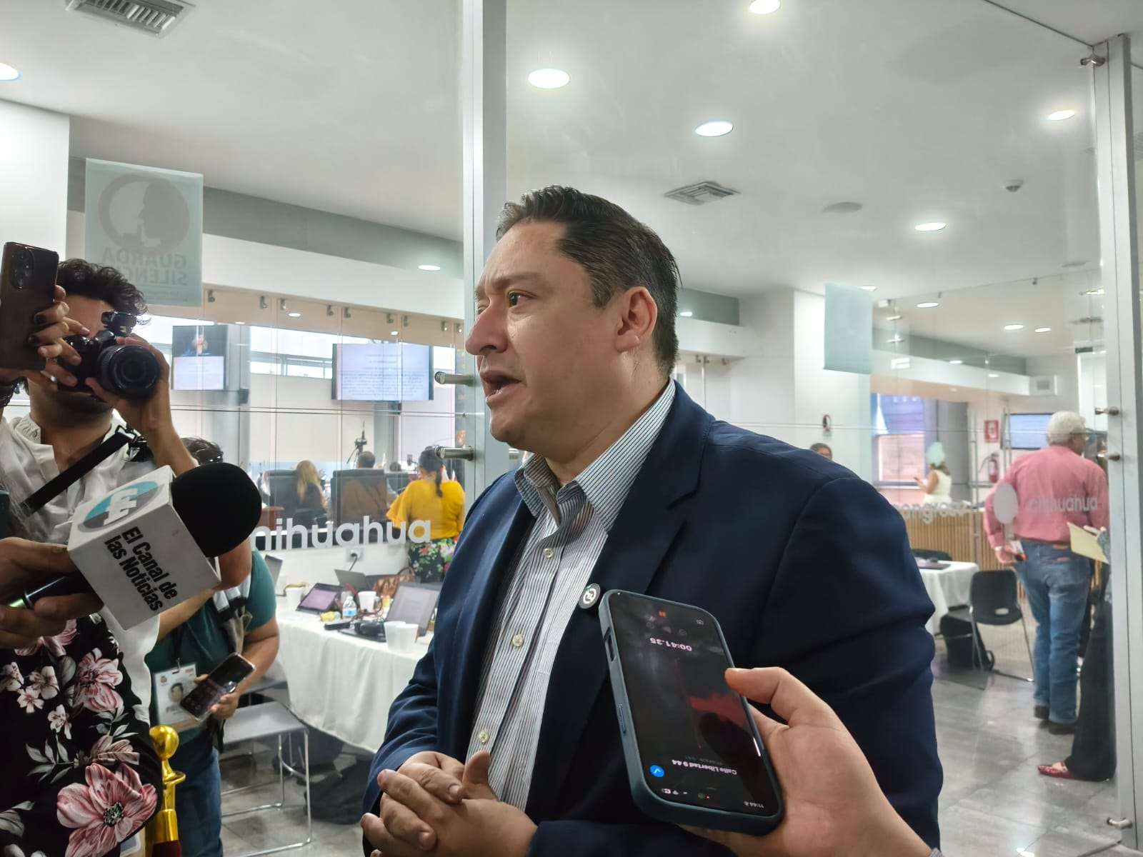 Chihuahua.- El coordinador del grupo parlamentario del PAN, Alfredo Chávez, expresó su solidaridad con el ahora exfiscal general del Estado, César Jáuregui Moreno, destacando que su renuncia representa una decisión responsable orientada a no entorpecer las investigaciones en curso sobre el caso "El Pinal".