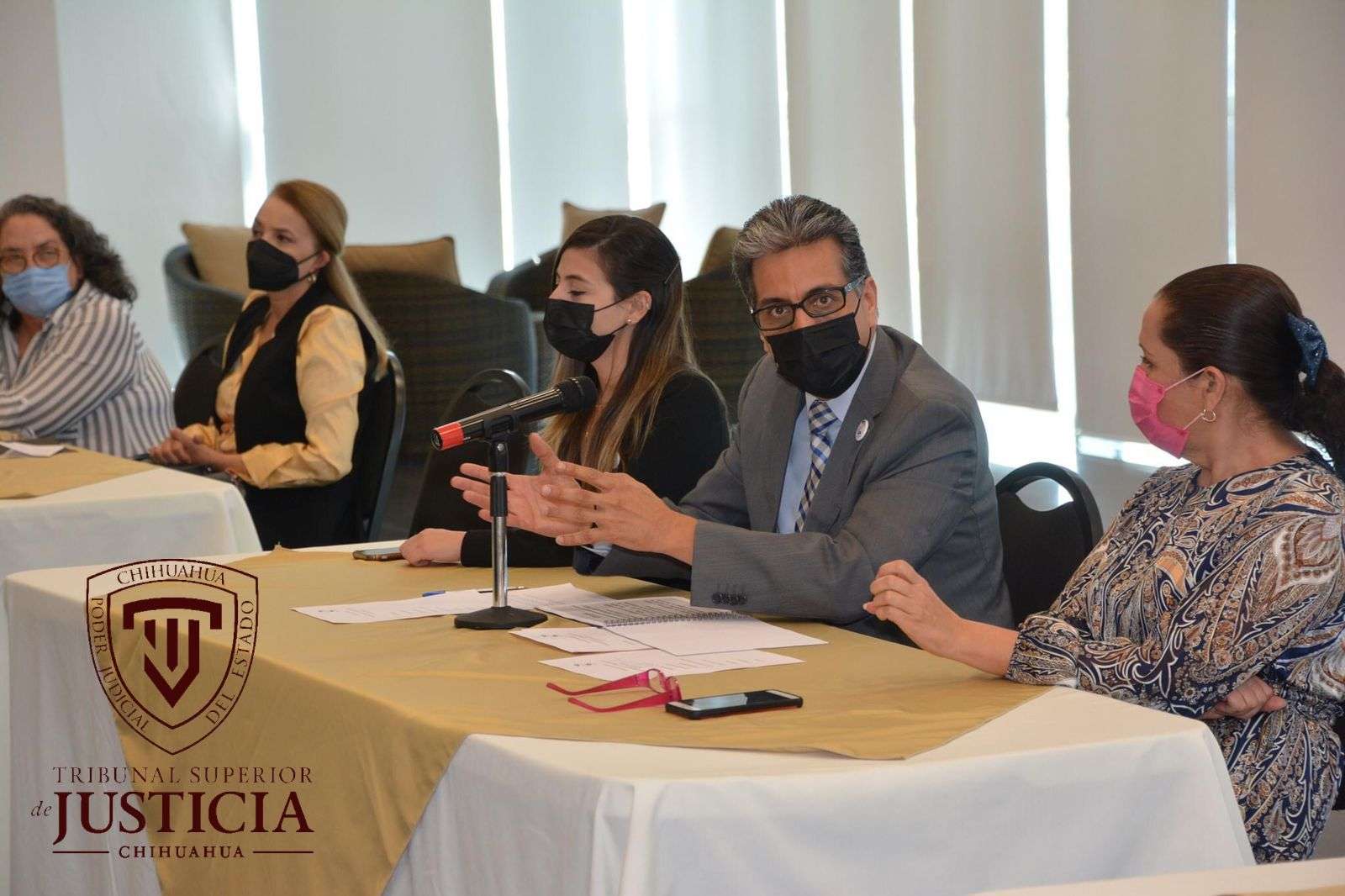 Chihuahua.- Esta reunión fue conducida por el Magistrado Rogelio Guzmán Holguín, responsable del proyecto y fue este quien dio una explicación de cómo, durante dos años, se ha transformado la forma de hacer justicia para niñas, niños y adolescentes mediante la operación de las SAPVOC, donde se antepone el interés superior de los menores escuchando su opinión sobre situaciones que pudieran afectar o incidir en su vida.