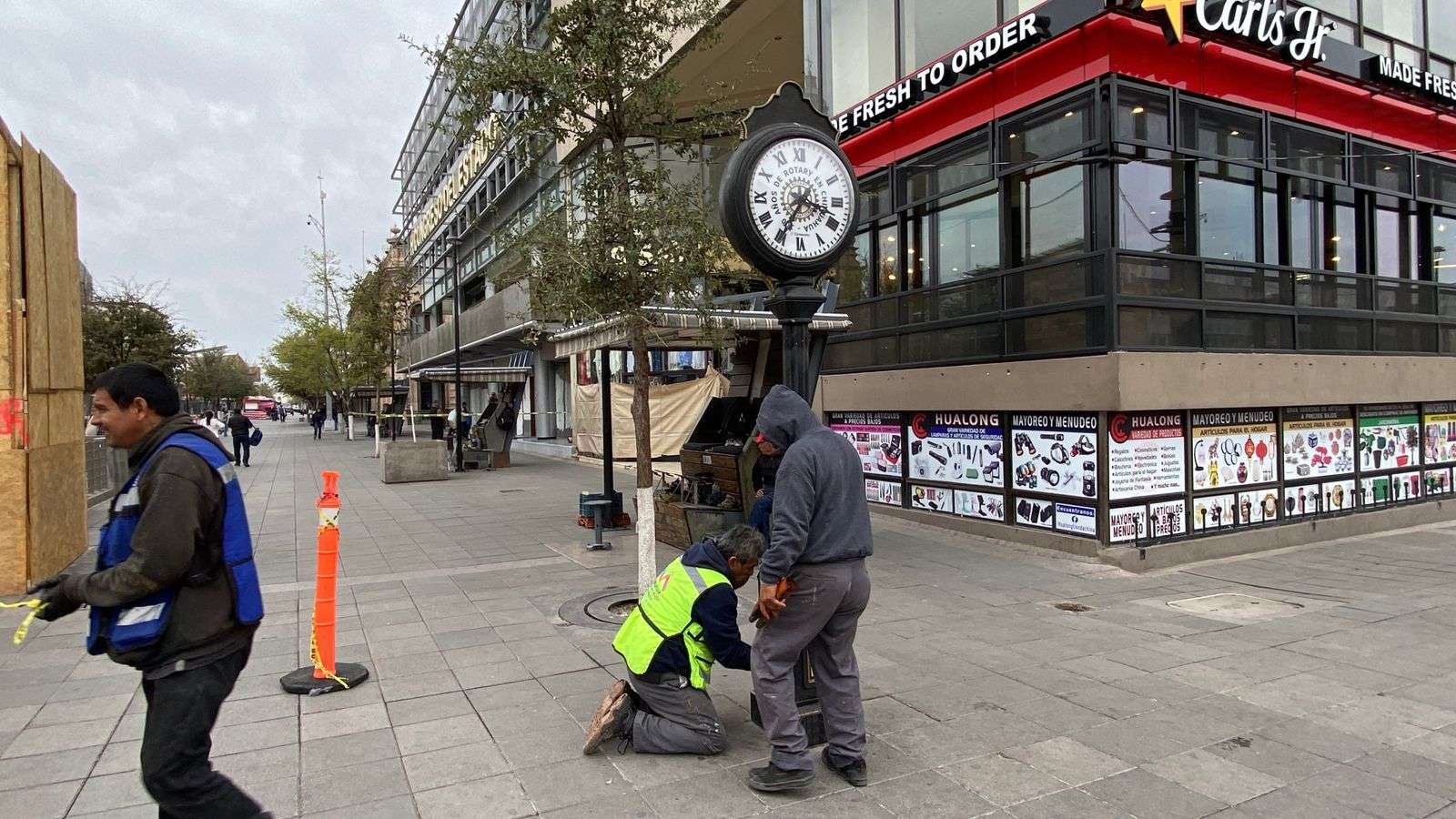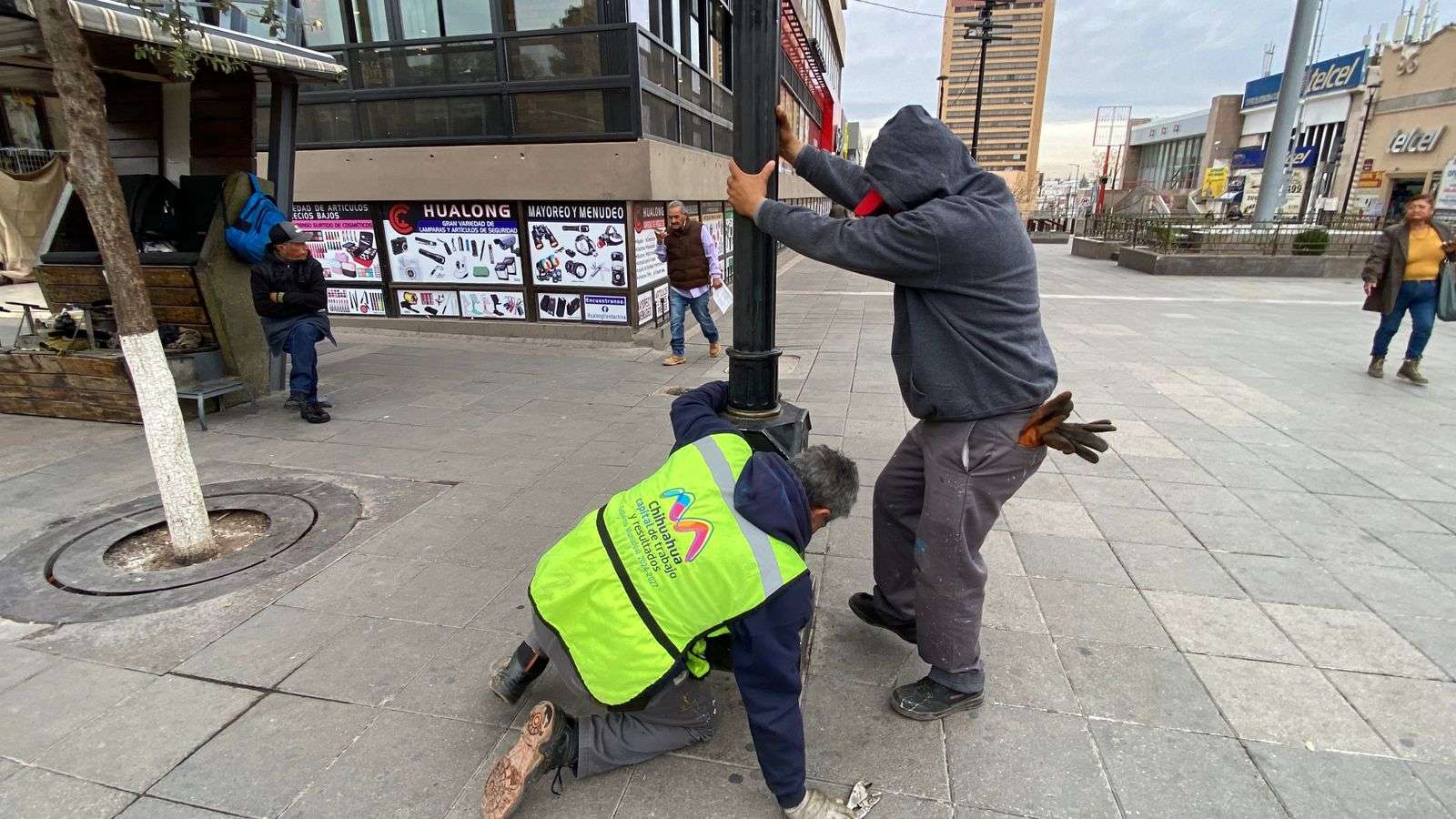 Chihuahua.- Una cuadrilla de trabajadores de Mantenimiento Urbano instaló de nueva cuenta el reloj que el Club Rotario de Chihuahua colocó en Libertad e Independencia.