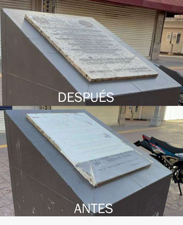 En días pasados, finalmente se retiraron los restos de madera y plástico para dar paso a la instalación de una nueva placa de mármol debidamente grabada.