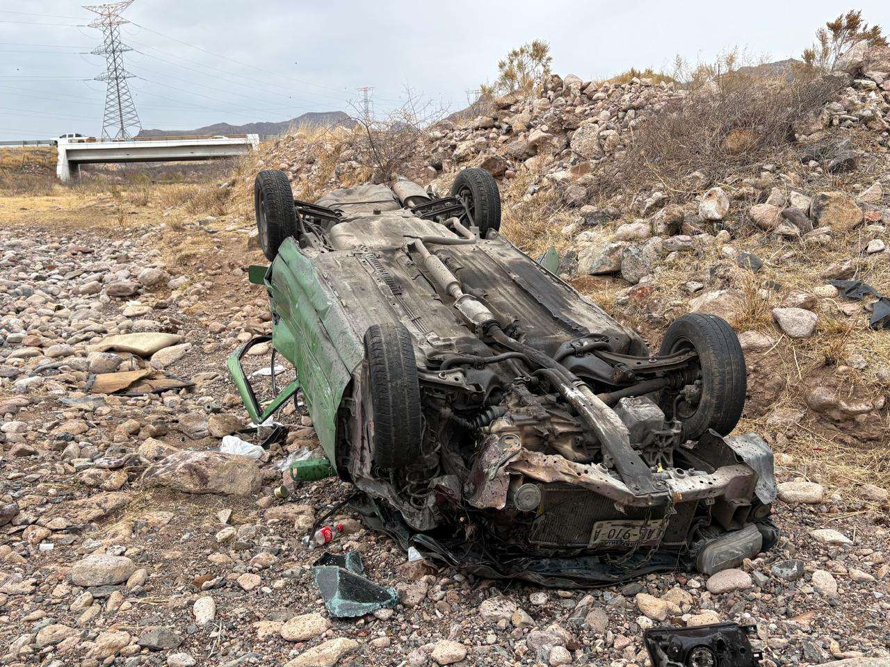 Chihuahua.- Dos personas resultaron lesionadas luego de un aparatoso accidente vial registrado a la altura del kilómetro 190 de la carretera Chihuahua–Delicias.
