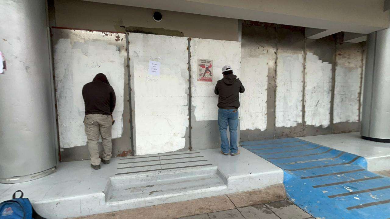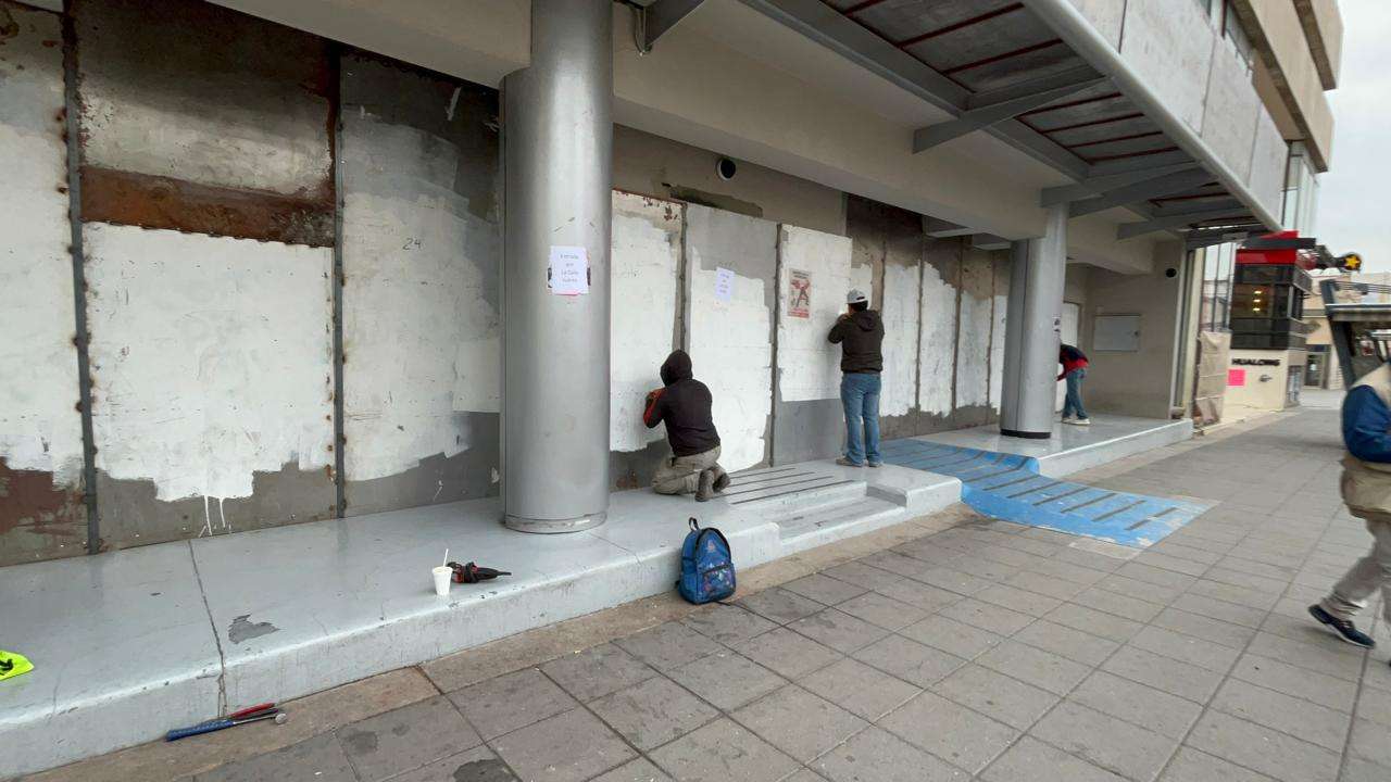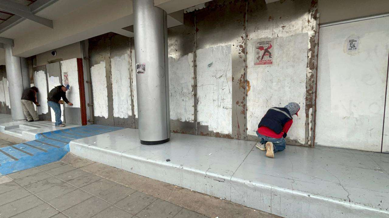 Chihuahua.- A primeras horas de este lunes, personal de mantenimiento y cuadrillas de limpieza iniciaron las labores para retirar las estructuras y placas de metal que resguardaron el edificio del Congreso del Estado durante las movilizaciones del Día Internacional de la Mujer.