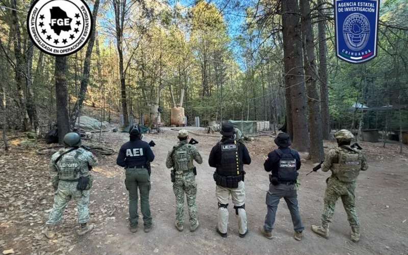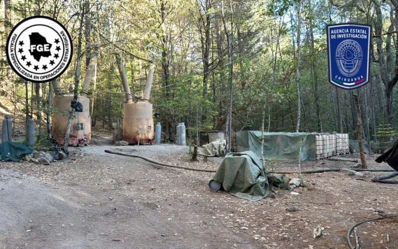 Chihuahua. - Esta mañana en rueda de prensa el fiscal general del estado César Jáuregui Moreno dio a conocer el aseguramiento histórico a nivel nacional de un campamento laboratorio para la fabricación de drogas sintéticas localizado a 6 horas del municipio de Moleros con una superficie de 850 metros cuadrados divididos en 5 áreas.