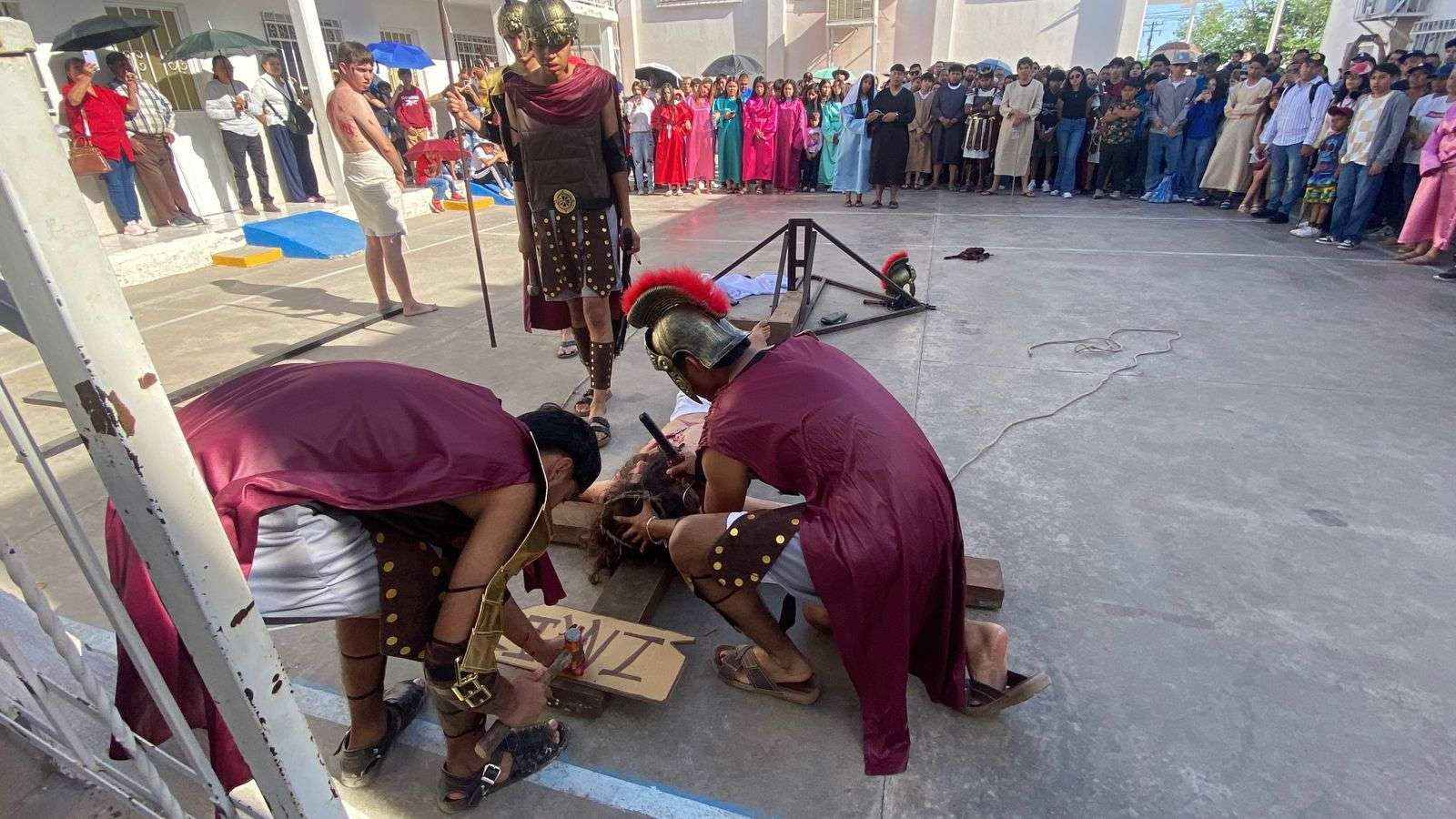 La representación buscó transmitir a los asistentes el profundo significado del sacrificio de Jesús en la cruz, reforzando el sentido espiritual de la fecha.