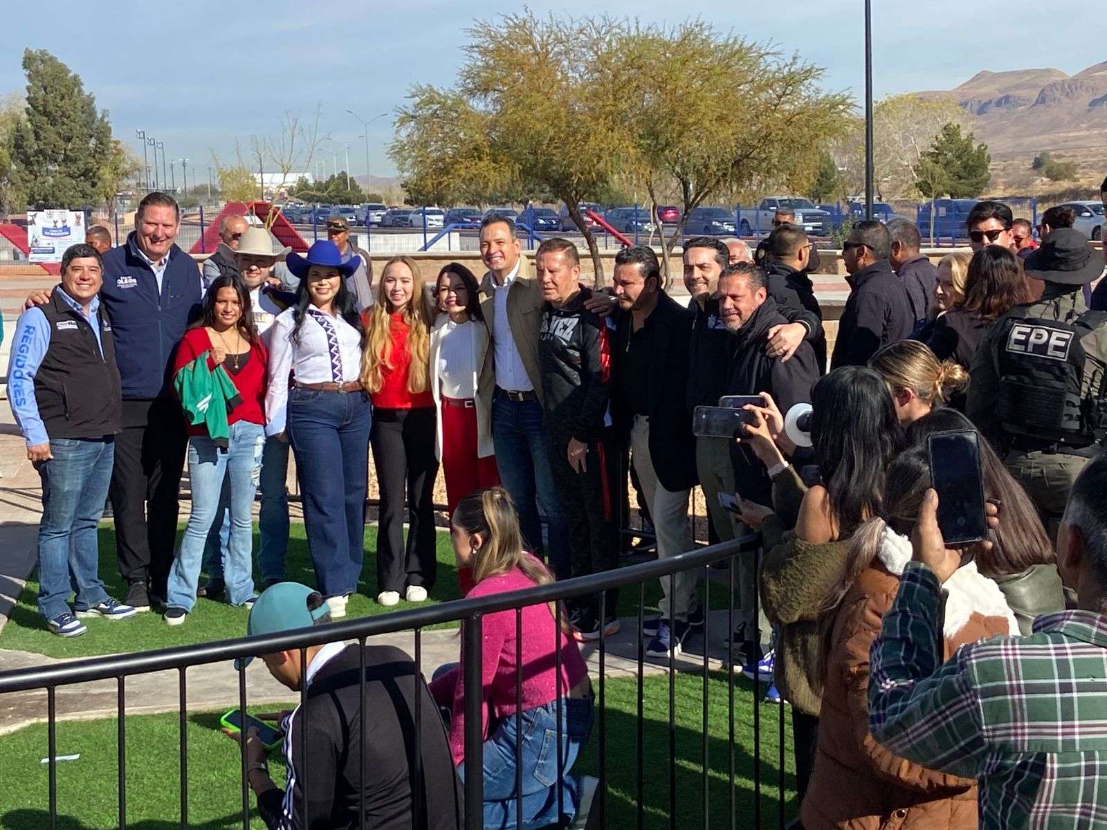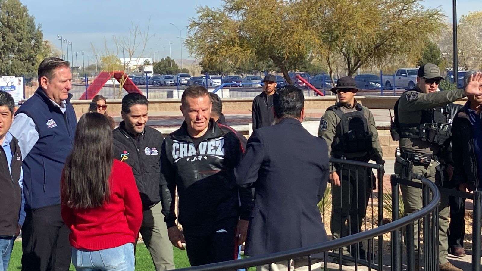 Más de 300 estudiantes asistieron a este emotivo homenaje que realizó el Municipio de Chihuahua a Julio César Chávez González, quien les agradeció y se tomó fotos con ellos, después de que lo ovacionaron en todo momento.