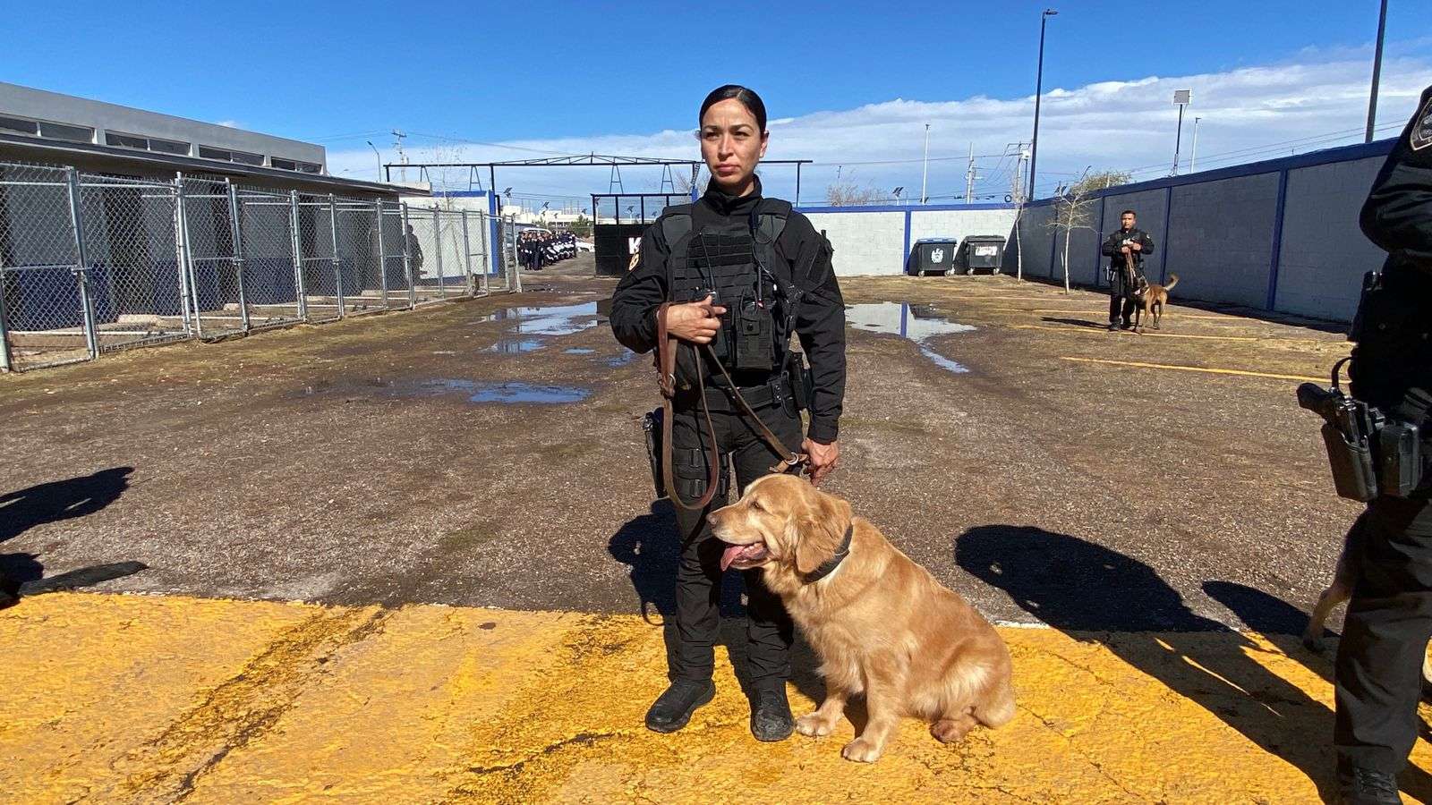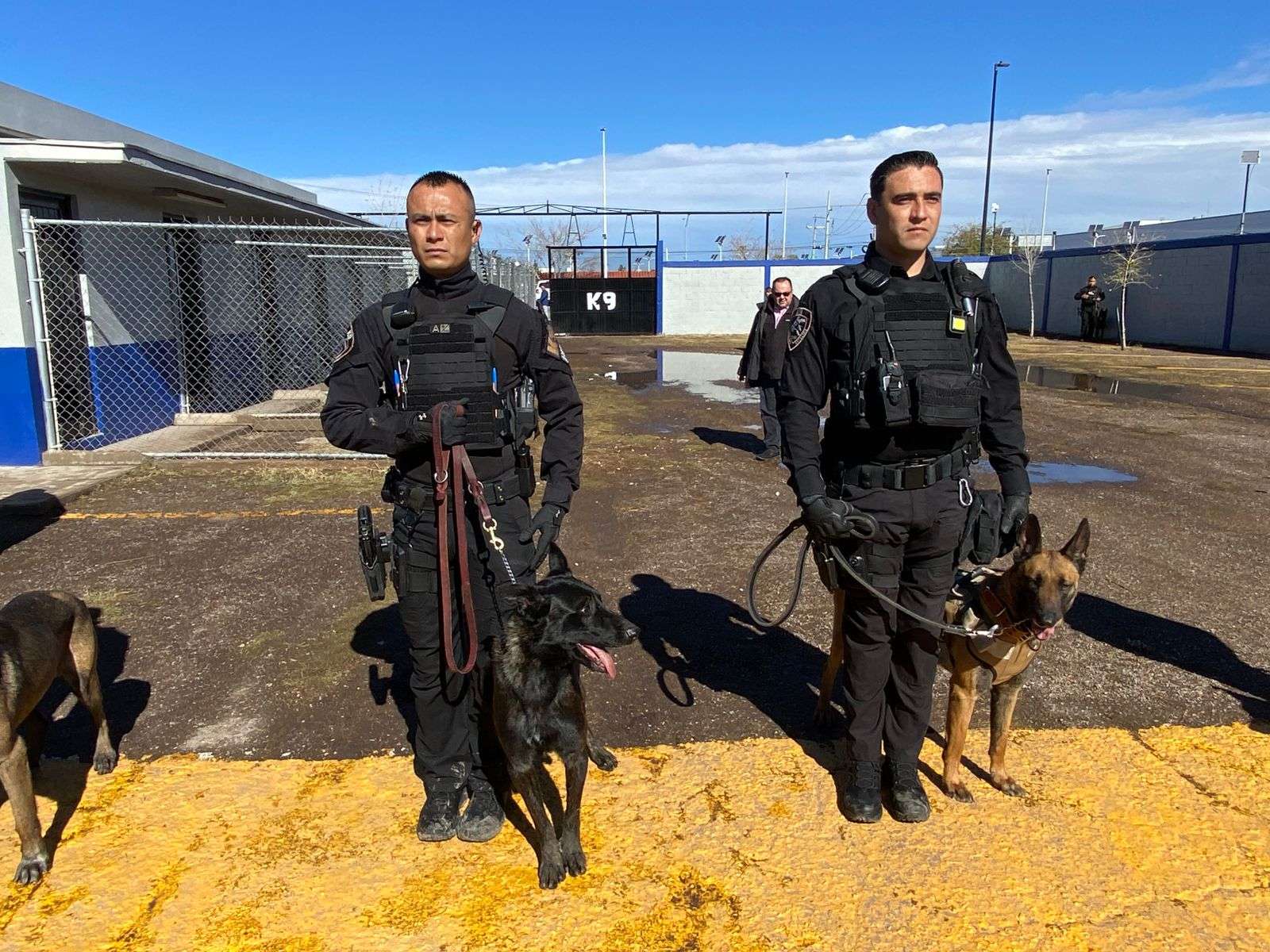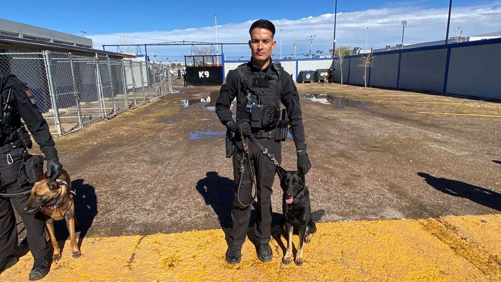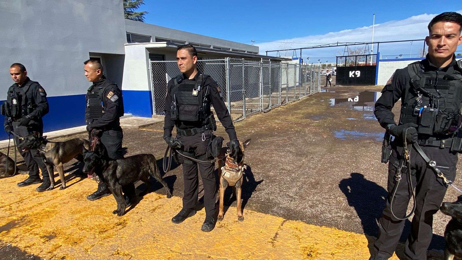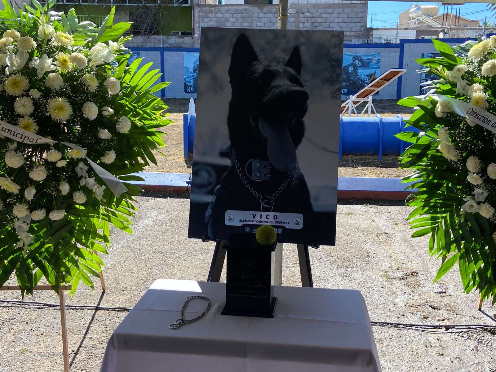 Chihuahua.- En las instalaciones de entrenamiento de los elementos caninos del grupo K-9, el alcalde Marco Antonio Bonilla Mendoza encabezó los honores póstumos a Vico, el elemento canino que murió en cumplimiento de su deber después de seis años de servicio.