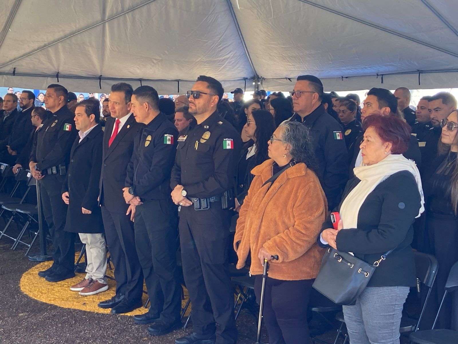 Los honores fueron acompañados por la banda de guerra de la Policía Municipal con el toque de silencio; asimismo, el Equipo de Proyectos Especiales realizó disparos de salva e hizo sonar las sirenas de las patrullas.