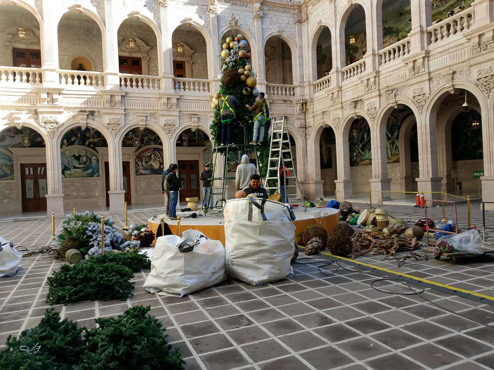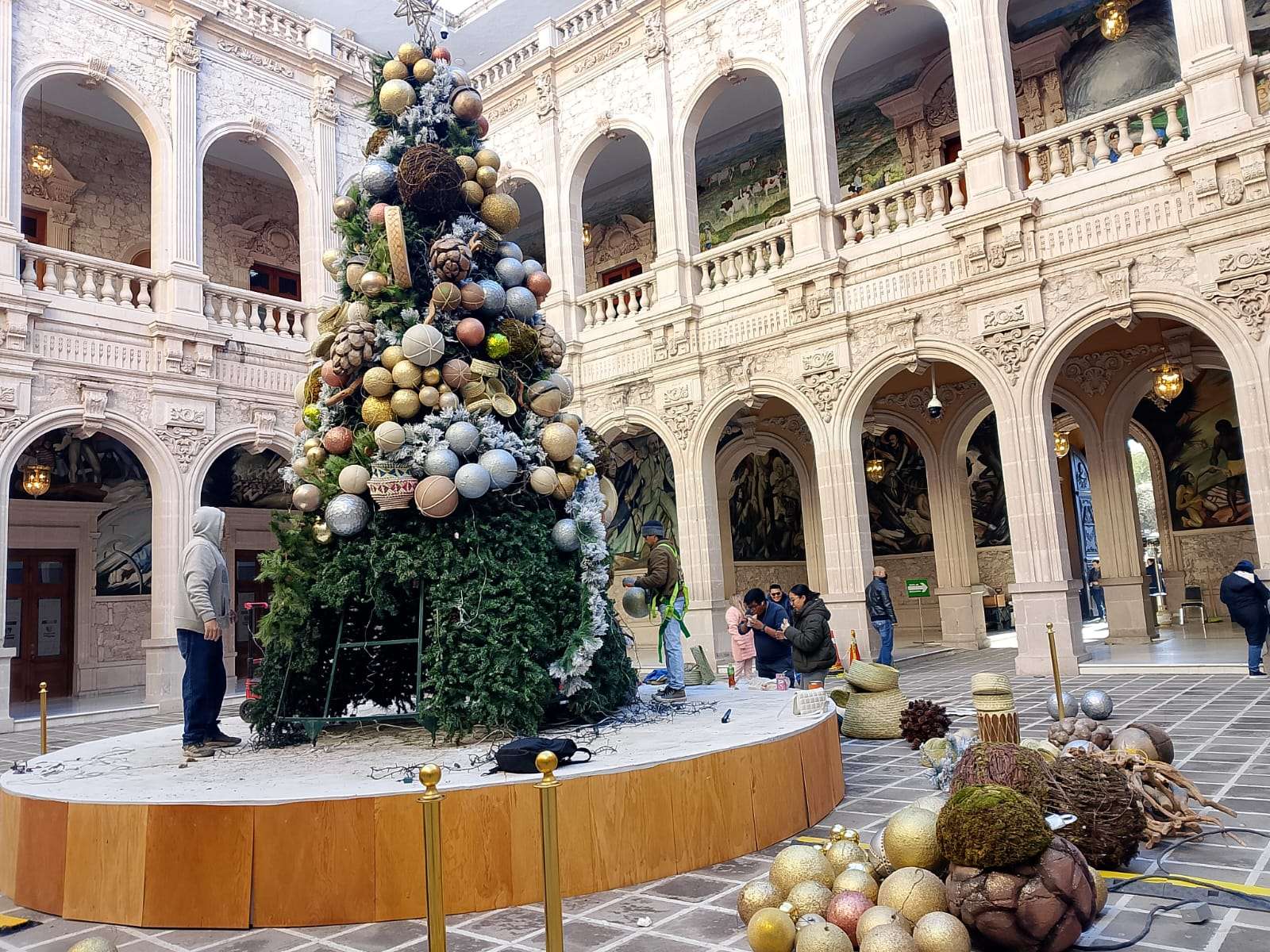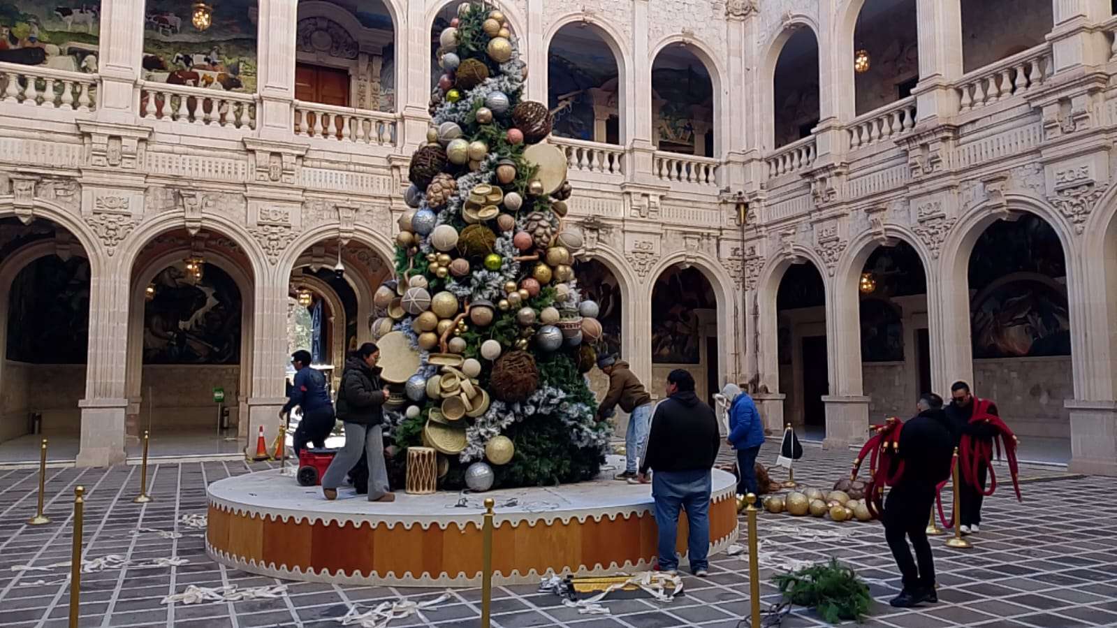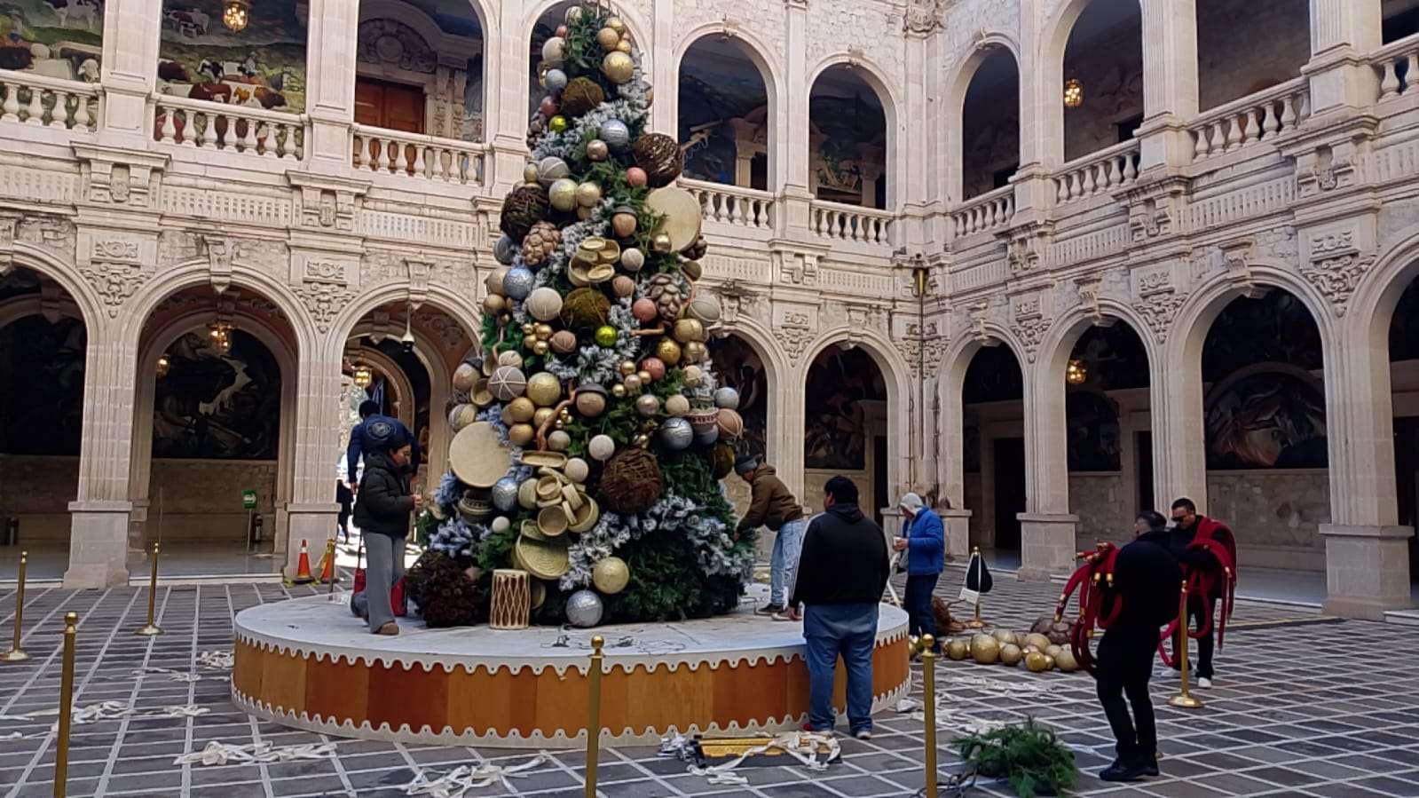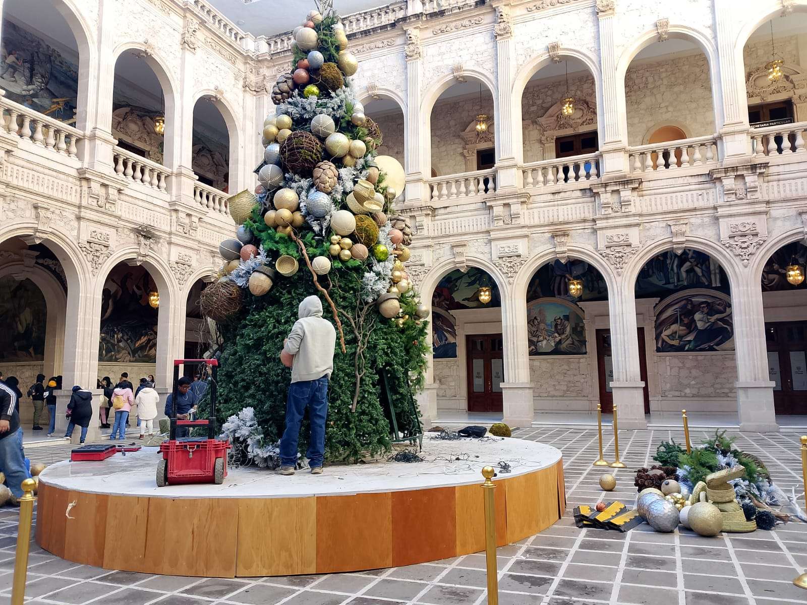 El desmontaje del adorno marca el cierre simbólico de la temporada navideña al interior del Palacio, que poco a poco recupera su imagen habitual, mientras el material decorativo será resguardado para su uso en próximas celebraciones.