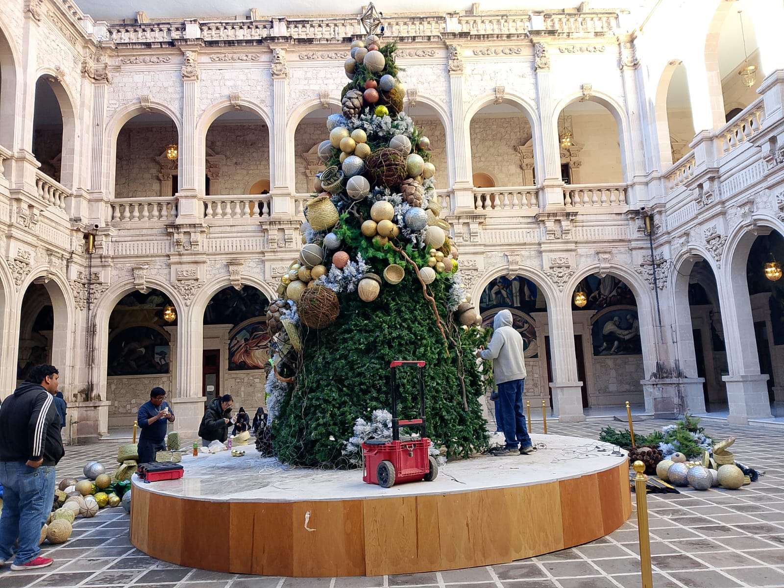 Chihuahua.- Con el fin del periodo decembrino, este miércoles iniciaron los trabajos para desmontar el árbol de Navidad instalado en el patio central de Palacio de Gobierno, uno de los elementos que acompañó la decoración interna del recinto durante las fiestas de fin de año.