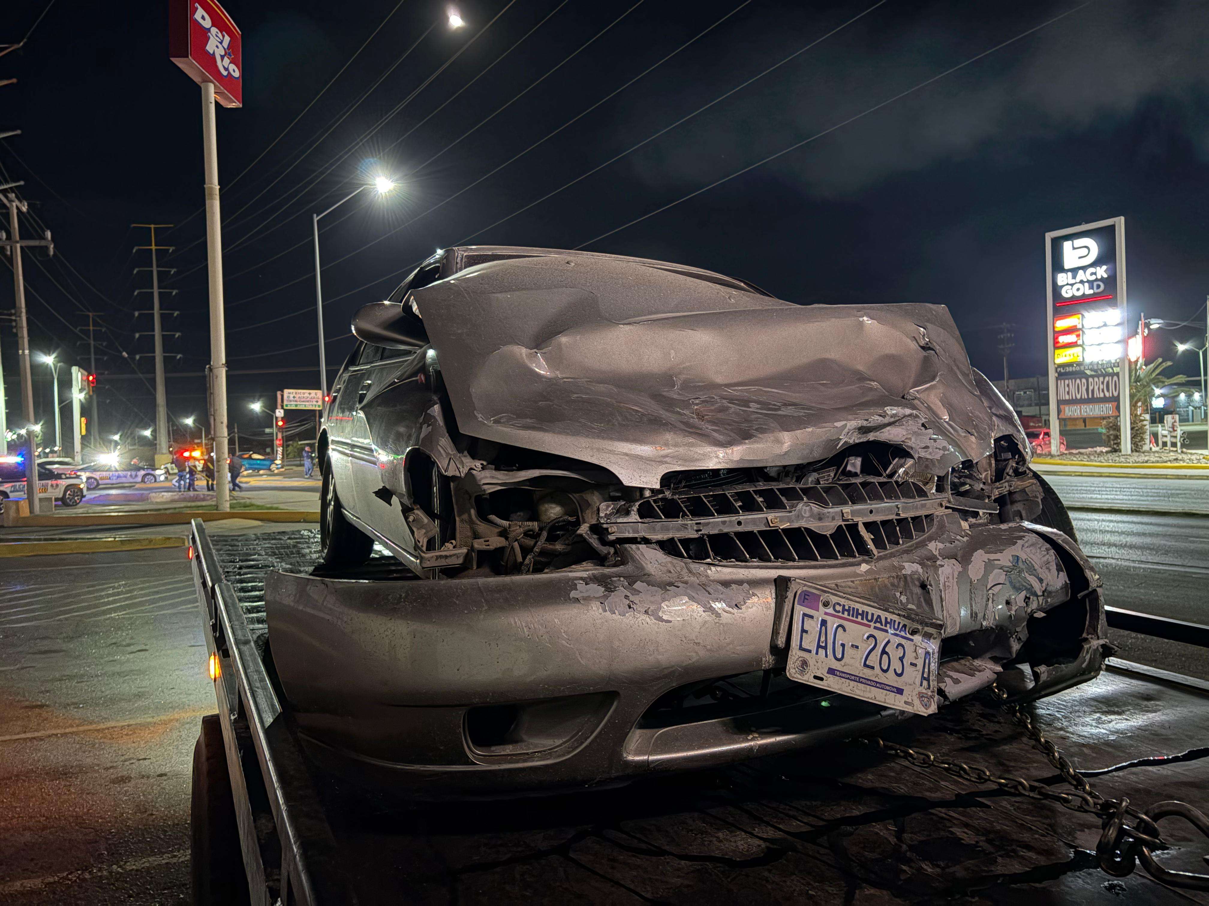 Paramédicos de la unidad URGE Chihuahua acudieron al sitio y trasladaron a la ocupante del Altima hacia un hospital, debido a que presentó heridas de consideración.