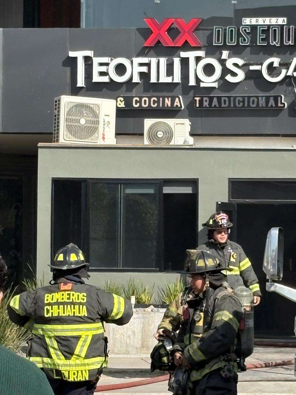 Chihuahua.- Se registró un incendio en el bar Teofilitos, ubicado en la intersección de las avenidas Cantera y Río de Janeiro, dentro de la plaza Rayuela.