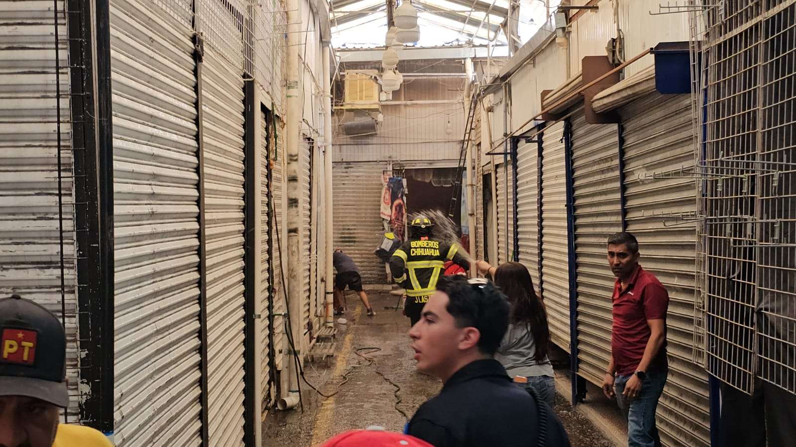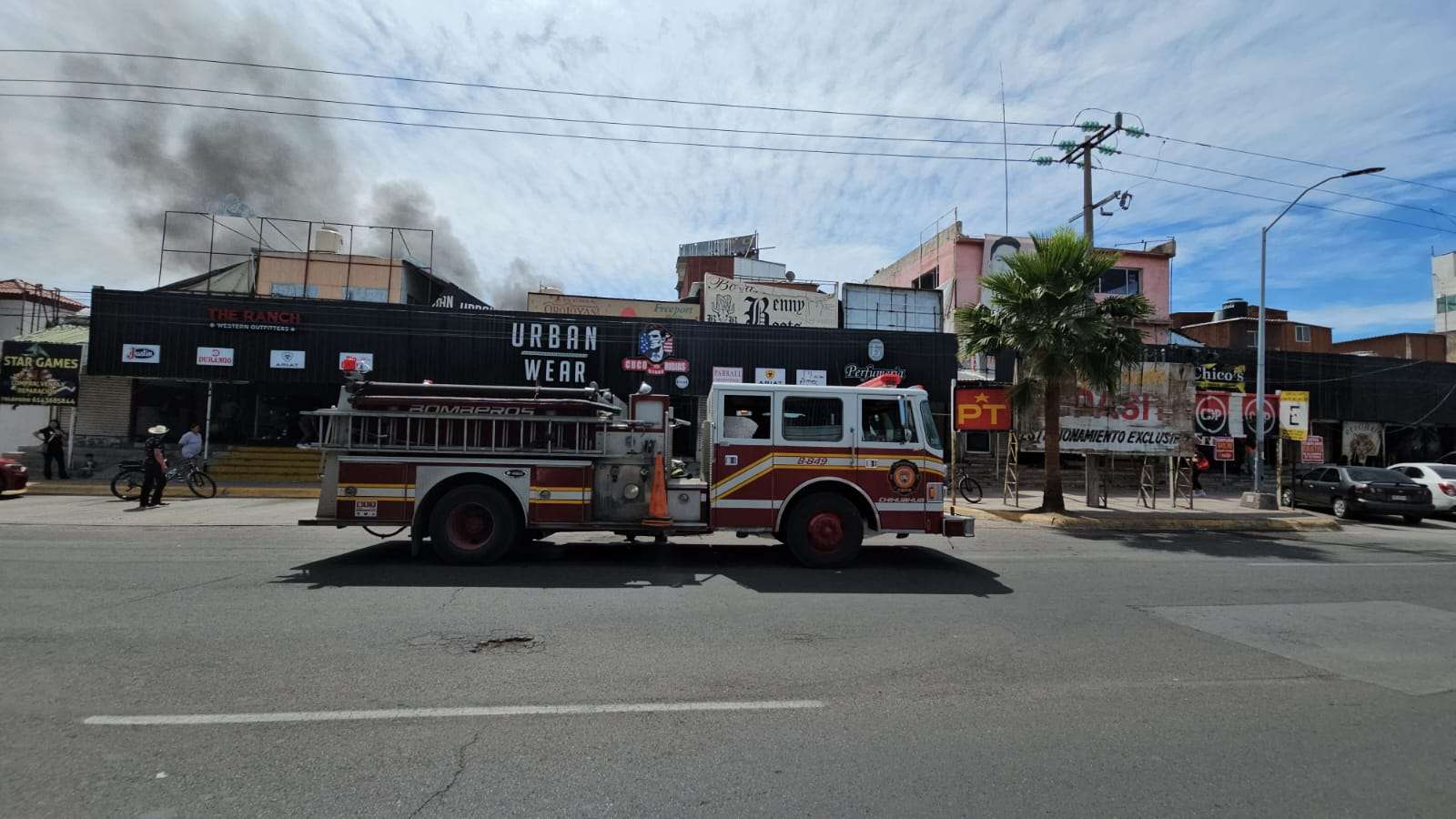 Chihuahua.- Un fuerte incendio se registró en un local de ropa del centro comercial El Pasito, ubicado sobre la avenida Juárez y calle 27, en la colonia Centro, lo que generó una intensa movilización de corporaciones de emergencia.