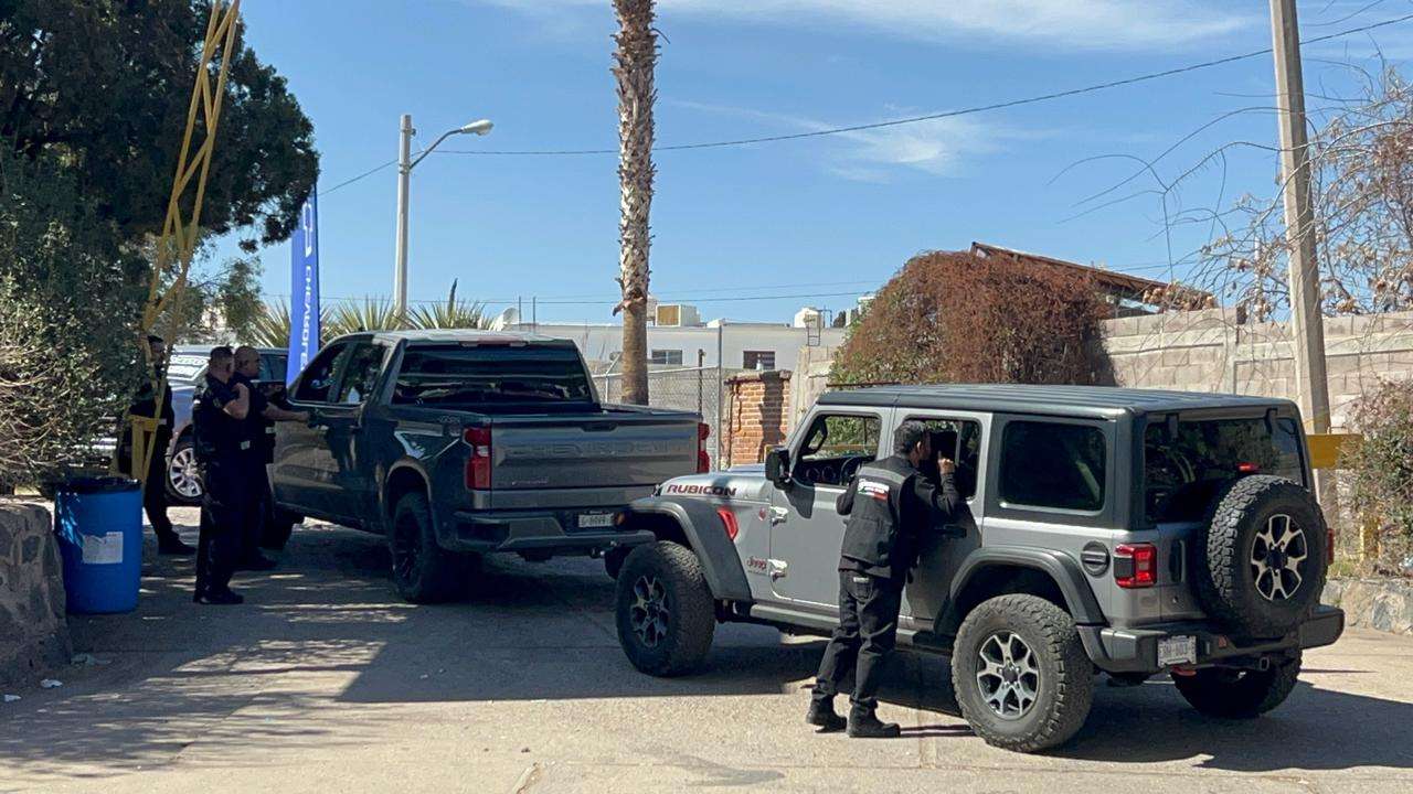 Resulta que los ocupantes de la patrulla PE-1503, una Chevrolet, Tahoe, modelo 2023, placas DWN145B, se bajaron tranquilamente a comer burritos en un local que se ubica en ese lugar.