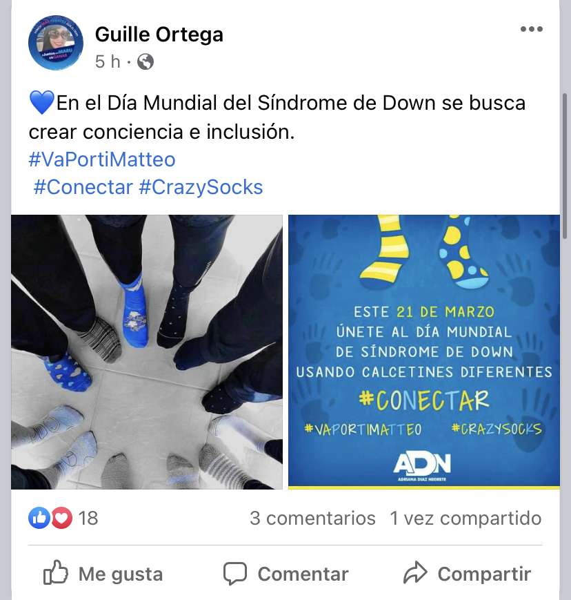 Algunos de diferentes Estados de la República y de la misma ciudad, compartieron fotos de sus calcetines o algunas selfies con familiares que tienen síndrome de down.