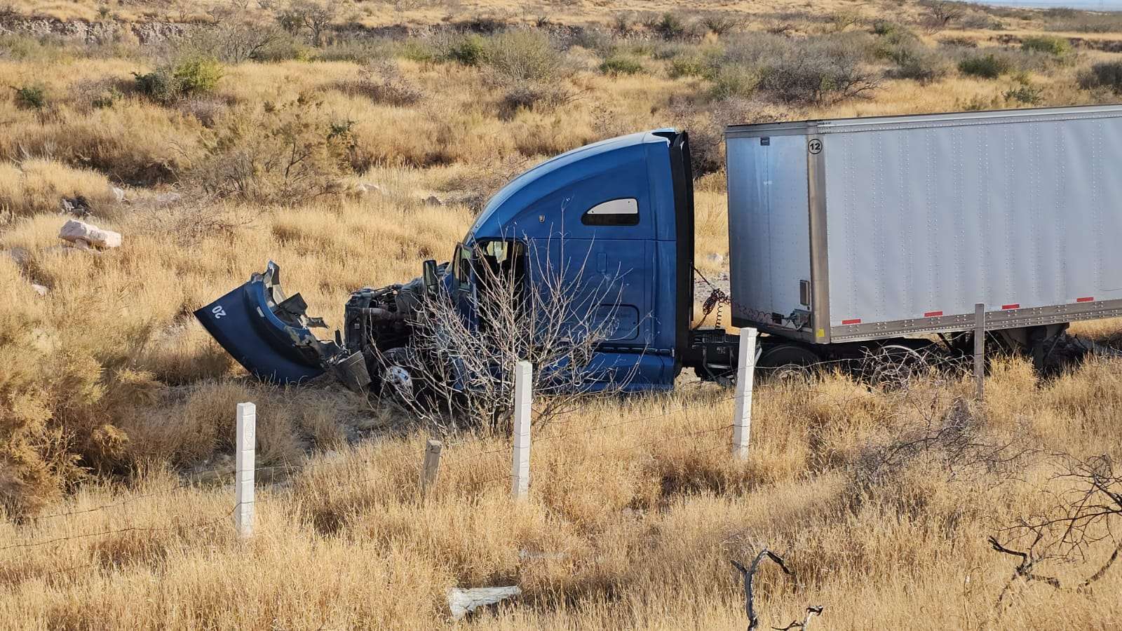Chihuahua.- Un tráiler que circulaba por la carretera Delicias–Chihuahua se salió del camino luego de que su conductor presuntamente se quedara dormido al volante.