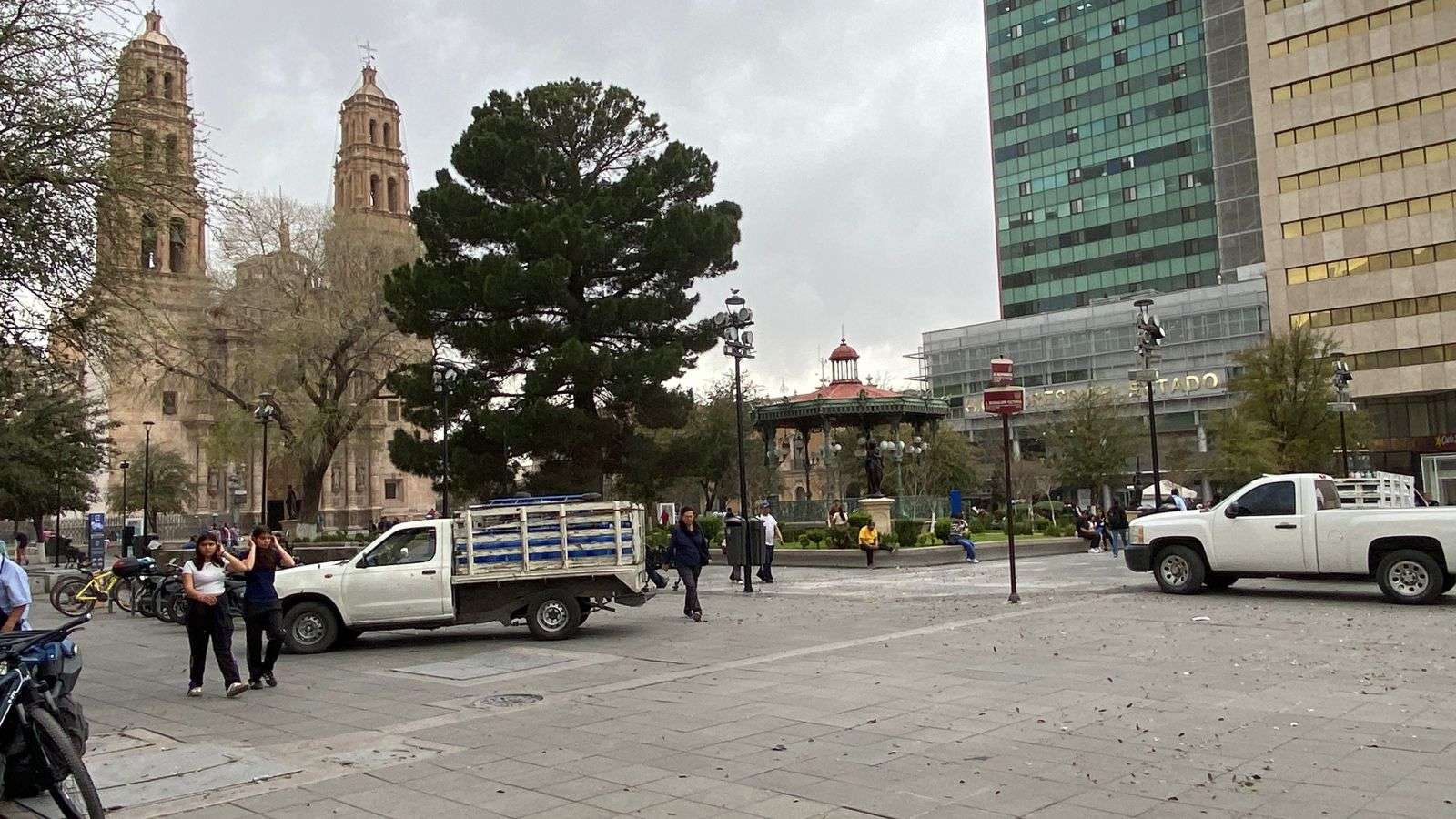 Chihuahua.– Fuertes ráfagas de viento comenzaron a sentirse en la ciudad la tarde de este martes, lo que refrescó el ambiente tras el intenso calor registrado en el primer cuadro, donde decenas de personas paseaban por las calles del centro.