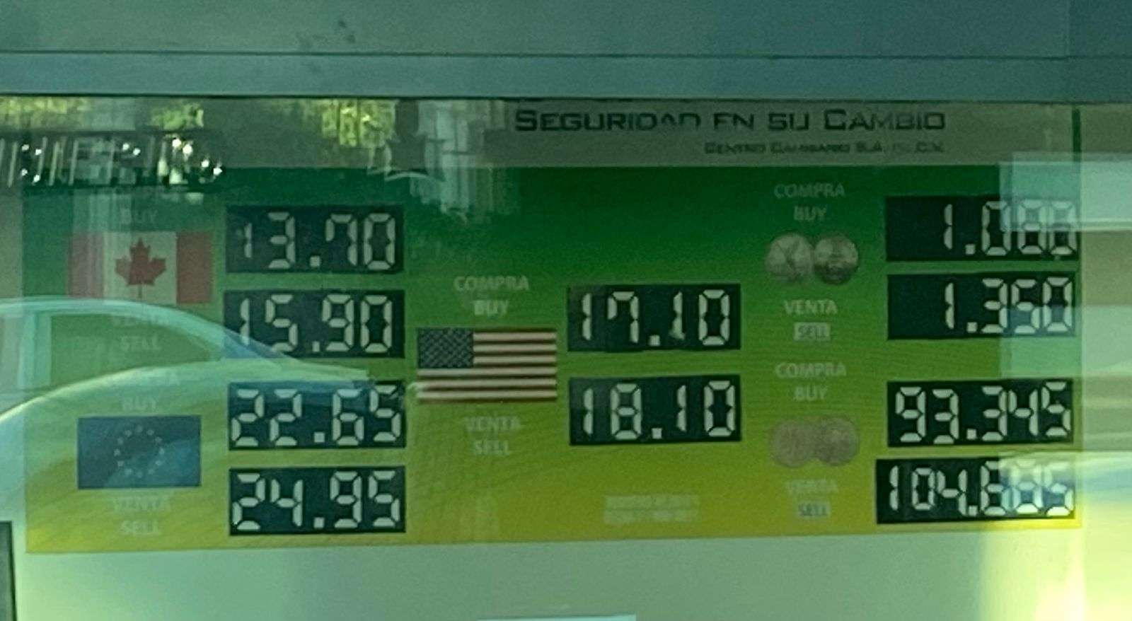 Por su parte, en ventanillas de la casa de cambio Camnosa, el dólar americano se ofreció en $18.10 a la venta y a $17.10 a la compra, en la sucursal ubicada en la calle Aldama, casi esquina con Ocampo.