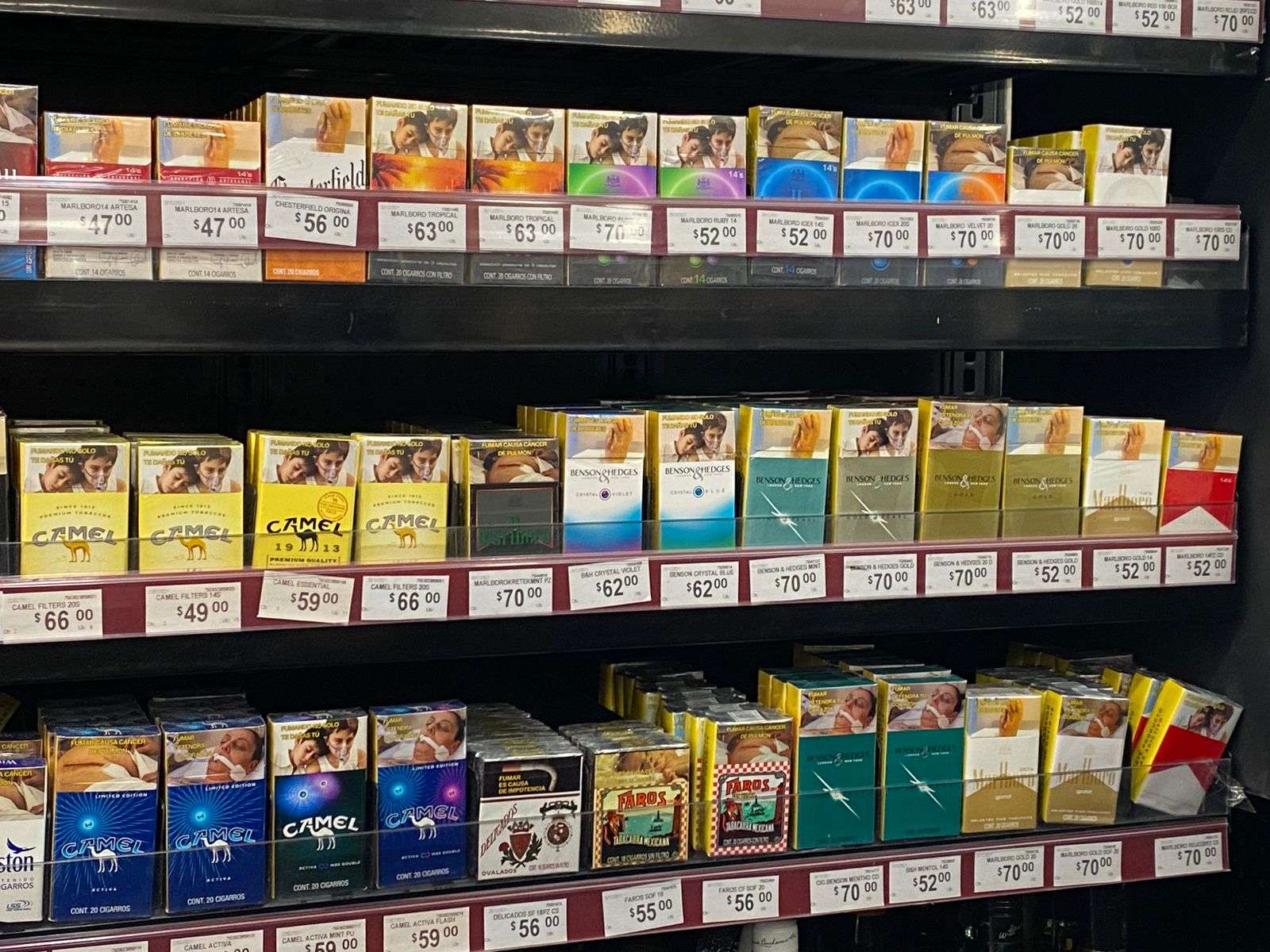 Las cajetillas de cigarrillos labrados más populares en con mayor demanda como Marlboro en sus presentaciones rojo y blanco de 20 piezas, pasaron de costar $66 a $70 pesos.